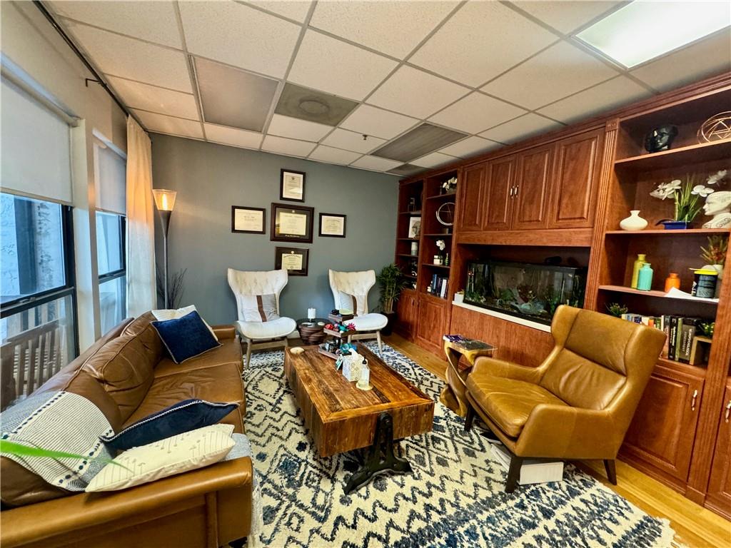 Fully renovated office condominium overlooking Mallard Cove pond. Bright and inviting space with plenty of natural light, windows, and a deck with water views. The suite features eight offices, including four with water/pond views, one very large in size suitable for a conference or a group room, a large reception area, break room/kitchenette, two bathrooms, and ample storage. An open foyer with architectural details provides a professional entry, while many offices include soundproofing along with updated carpet, tile, and hardwood flooring. Located right off of interstate 75, just one mile from the Braves Stadium and close to the new Porsche dealership and Wellstar building, this property offers excellent visibility in a rapidly growing business district with ample on-site parking. Well suited for therapists, attorneys, accountants, or medical professionals, as it combines quality finishes, practical layout, and a prime location.