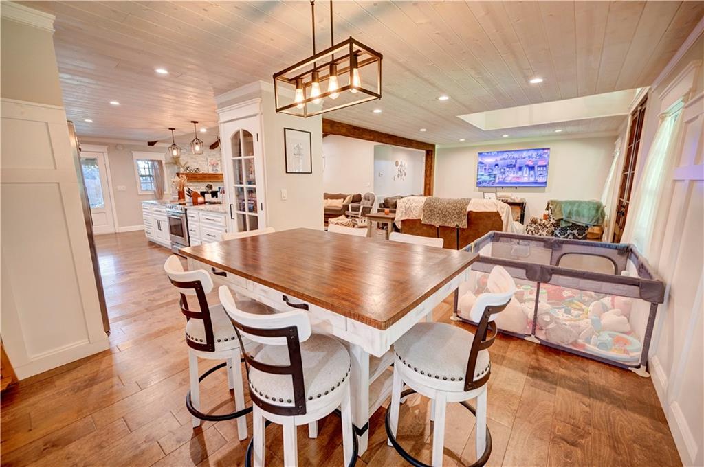- KitchenBreakfast Bar, Cabinets White, Pantry, Stone Counters, View to Family Room