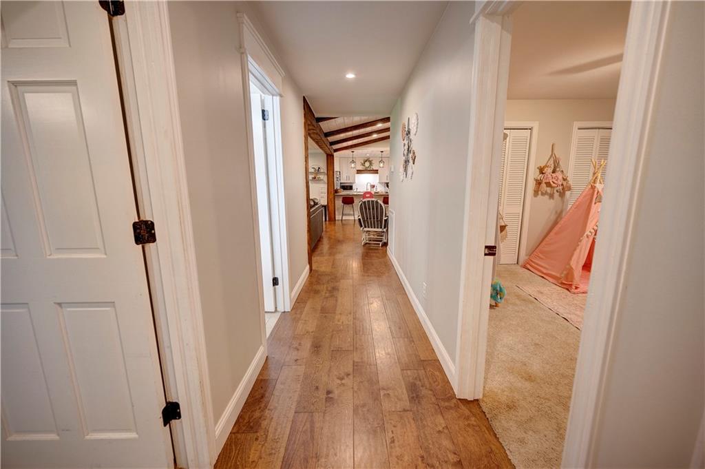EXQUISITE, MAGAZINE-WORTHY RENOVATION WITH INDOOR AND OUTDOOR LIVING SPACES! Perfectly positioned amidst a SPACIOUS, LEVEL LOT, this ONE -LEVEL rancher has been thoughtfully remastered from top to bottom, with no attention to detail spared. The impressive exterior greets you with remarkable CURB APPEAL, featuring BRICK with faux STONE ACCENTS, WOODEN COLUMNS, and a notable, rich hue. From the ROCKING CHAIR FRONT PORCH, guests embark through the wooden and glass DOUBLE ENTRY DOORS and are welcomed into the WIDE-OPEN-CONCEPT FOOTPRINT with brilliant NATURAL LIGHTING, PERFECT FOR ENTERTAINING and everyday living. The OPULENT KITCHEN is ideal for cooking enthusiasts, and is equipped with QUARTZ COUNTERS; STAINLESS APPLIANCE PACKAGE; CABINET-SPACE GALORE with SOFT-CLOSE options; and generous PREP ISLAND with BREAKFAST BAR SEATING for 5, providing a place of congregation. It effortlessly spills into the LIVING ROOM, with DECORATIVE FIREPLACE serving as the focal point. The VAULTED, TONGUE-AND-GROOVE CEILINGS are crafted with WHITE-WASHED PINE and accentuated by handsome BEAMS. The DINING AREA is embellished with dapper JUDGES PANELING, creating a timeless ambiance for memorable meals. LUXURIOUS LAUNDRY/MUDROOM is positioned just off the garage, including BUILT-IN HANGING LOCKERS and UTILITY SINK. On the opposite end of the structure, you will discover the home’s sleeping quarters. The OWNER’S SUITE features a spacious bedroom with whitewashed pine ceiling, and PRIVATE ENSUITE with tub/shower combo, boasting handsome TILE SURROUND. The secondary bedrooms are generously-sized (one with 2 closets), and share a hall bath with SIT-DOWN MAKE-UP STATION. ENJOY FALL FOOTBALL and OUTDOOR ENTERTAINING on the COVERED BACK PORCH, overlooking the FENCED BACKYARD. Additional Highlights include: No HOA; 2-car garage; Total electric home; Refrigerator in kitchen can stay for new buyer, if desired. Discover TIMELESS BEAUTY and modern luxury as you tour this incredible property, which is positioned in the county, but adjacent to city property. Welcome Home to 133 Kentucky Drive!