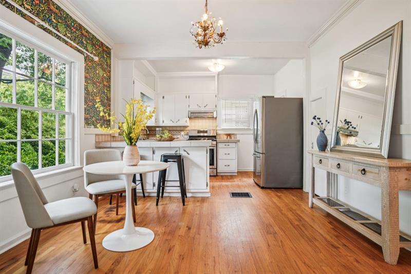Discover the magic of 615 Sycamore Drive, a picture-perfect English cottage nestled in one of Decatur's most cherished neighborhoods. Perfectly positioned just moments from the vibrant downtown square, currently undergoing an exciting multimillion-dollar renovation ahead of the 2026 World Cup games. This home offers a unique blend of community, culture and convenience. From the moment you arrive, this enchanting English-style cottage with warm hardwood floors invites you in with its timeless appeal and beautifully landscaped surroundings. Inside, the home has been thoughtfully updated to preserve its character while enhancing livability. The spacious living room opens to a charming, screened porch through classic French doors; an ideal spot for enjoying coffee in the morning or hosting friends on warm evenings. The updated kitchen features stainless steel appliances, including a new refrigerator, dishwasher and disposal, while the primary suite offers a tranquil retreat with a generous walk-in closet and a newly renovated bathroom with a double vanity in addition to classic tile floors. Tucked away in the backyard, the heated and cooled detached office is a true standout. Flooded with natural light and already plumbed, it's the perfect space for a home office, art studio, or future guest suite with room to add a bath. The large, flat and fenced backyard offers plenty of room to play, grow, or expand. Set on a tree-lined street where neighbors greet each other by name and the energy of Decatur is just around the corner, this home is a rare blend of charm, functionality and location. Don't miss the opportunity to make this beloved Decatur gem your own.