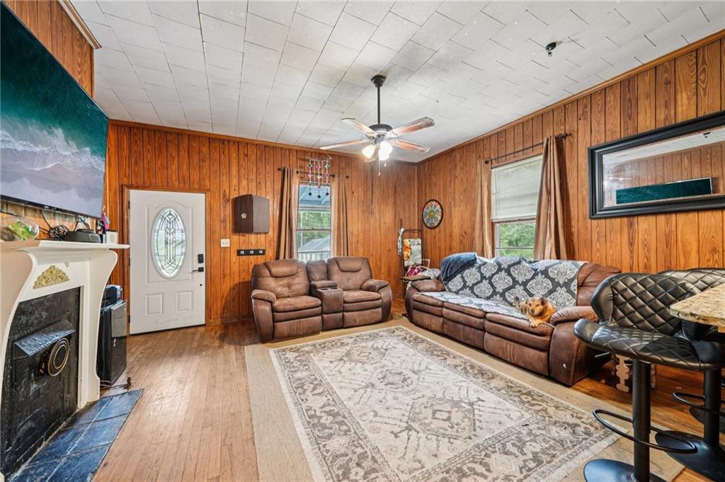 Step into timeless charm with this inviting 2-bedroom, 2-bath bungalow nestled in the heart of Conyers. Built in 1900 and brimming with character, this home features original hardwood floors, wood-paneled walls in the family room and bedroom, and two decorative masonry fireplaces that add a cozy, vintage touch. The spacious kitchen and in-kitchen laundry area offer convenience and functionality, while the large back porch provides the perfect space to relax and unwind. Situated on a generous 0.28-acre lot, the property includes a detached garage and ample parking. Located just minutes from I-20, shopping, schools, and the hospital, this home is ideal for those seeking charm with accessibility. Whether you're looking for a personal residence or a promising rental investment, this property offers endless potential.