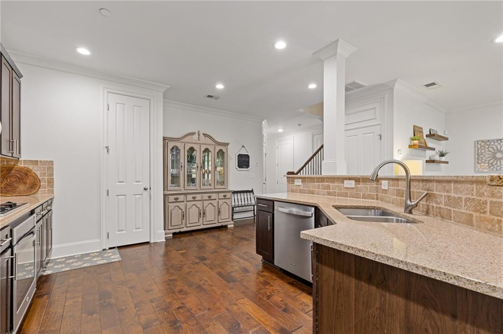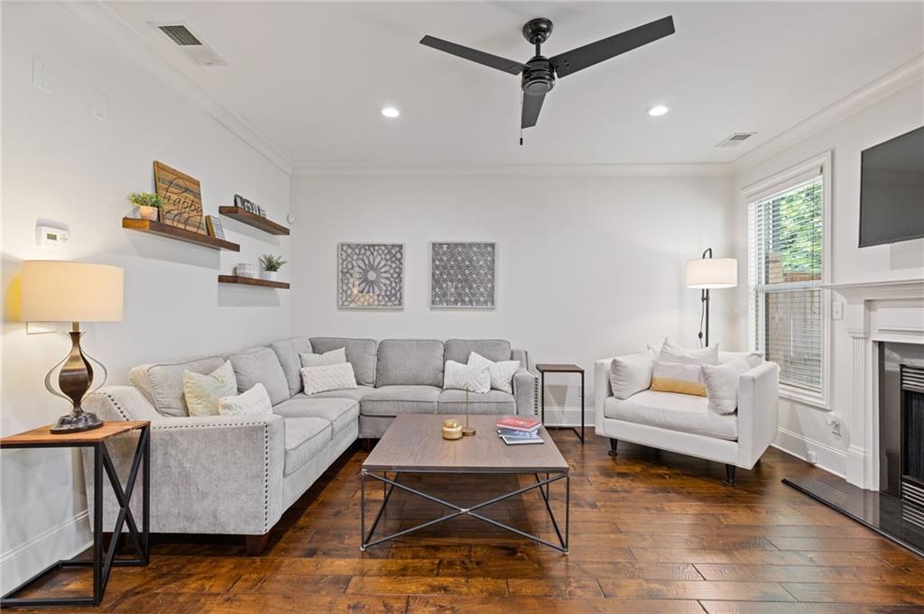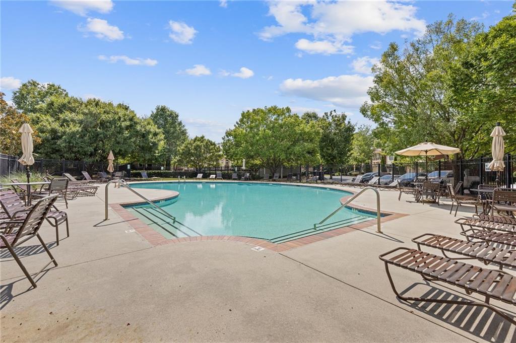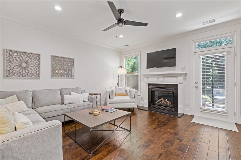 Welcome to the Highlands of Sandy Springs, a charming, gated neighborhood with resort-style amenities in the heart of Sandy Springs. Residents enjoy low-maintenance living with HOA perks that include yard maintenance. This meticulously maintained townhome is freshly painted with neutral colors throughout and offers ample space and comfort. As you step inside, a spacious foyer welcomes you, leading down a hallway to the open-concept kitchen and family room. The chef's kitchen has an oversized island, ample cabinetry, a large pantry, stainless steel appliances, a tile backsplash, and granite countertops. The family room features a cozy gas fireplace with marble surround, creating the ultimate ambiance for relaxing or entertaining. A private patio off the family room is ideal for grilling or unwinding with a cup of coffee or a glass of wine. Upstairs has recently installed luxury vinyl plank flooring in all three bedrooms and the loft area. The over-sized owner's suite bath includes a double vanity, a shower, and a separate soaking tub, leading to large walk-in closet. The secondary bedroom also has a huge walk-in closet. This townhome truly blends convenience with luxury. The neighborhood offers two gated entrances, a pool, gym, dog park, and green space. With easy access to both 400 and 285 and abundant shopping and dining options, this location has it all. You'll be less than 3 miles from Dunwoody Village, Perimeter, central Sandy Springs, and Costco, only 5 miles from downtown Roswell, 10 miles from Buckhead, and 30 miles from the airport.