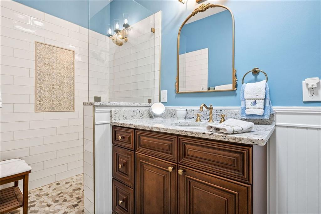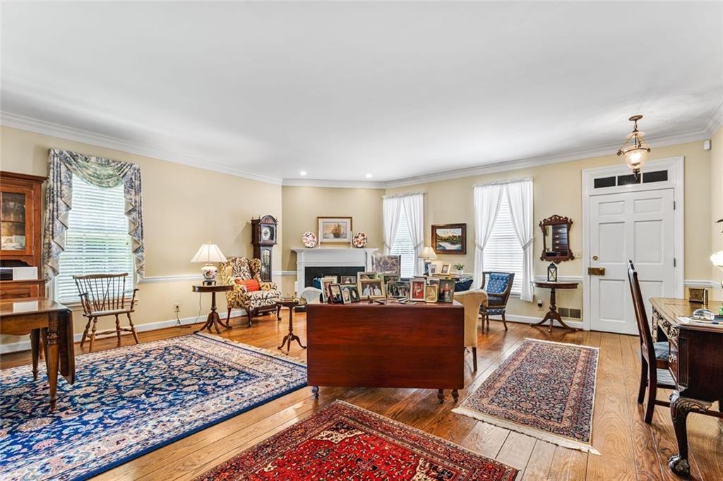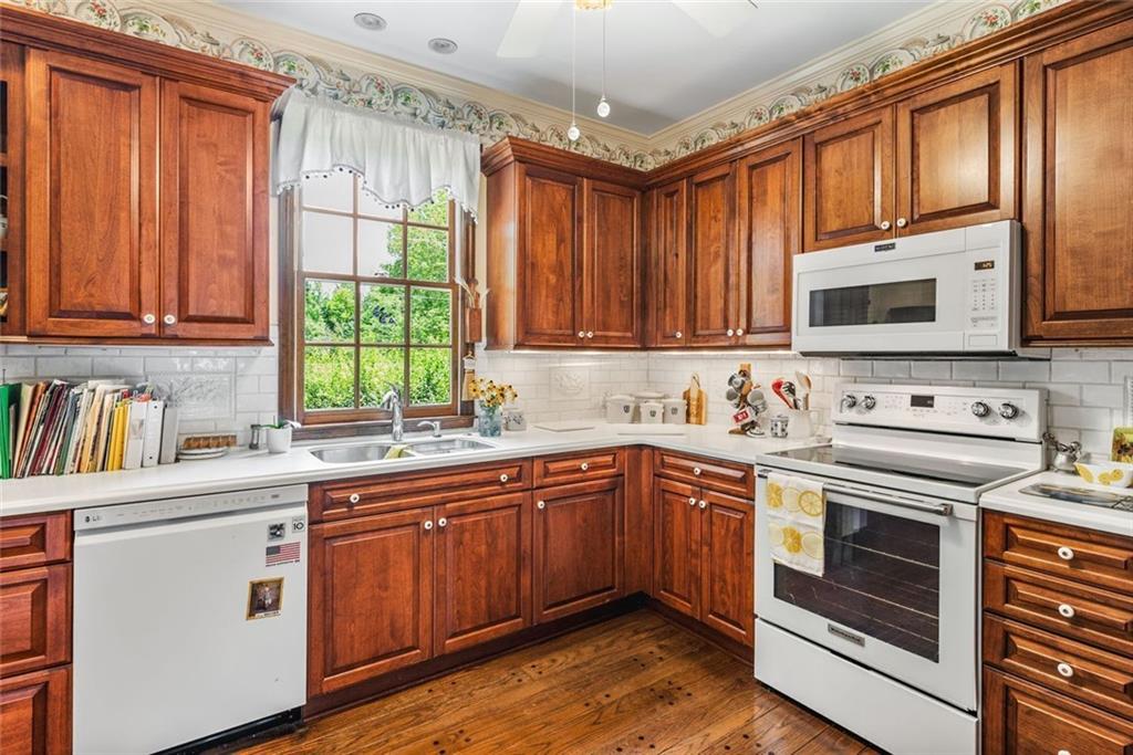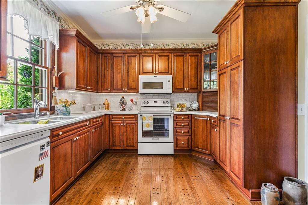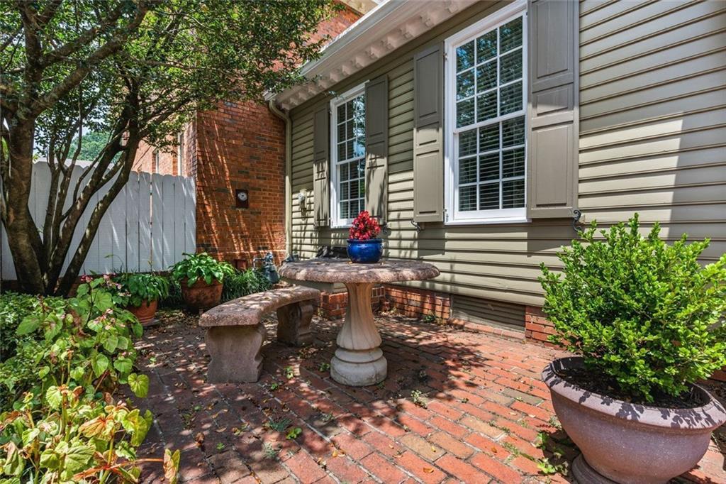 Located on one of Marietta’s most storied streets, 490 Chowning Place is a rare gem, a meticulously designed replica of Colonial Williamsburg architecture set in the heart of the Kennesaw Avenue Historic District. This beautifully updated 2-bedroom, 2-bath home offers one-level living with unmatched charm, character, and location. Inside, you'll find wide plank real pine floors, 9-foot ceilings, and an open living and dining concept anchored by a classic wood-burning fireplace. The kitchen has been tastefully updated with quartz countertops, modern appliances, and a bright eat-in breakfast area—perfect for both everyday living and entertaining. The oversized primary suite features a fully renovated bathroom with granite counters and a subway-tiled walk-in shower. Outside is a large private brick courtyard—fully fenced, lushly landscaped, and ideal for relaxing or gathering with guests. Additional features include a detached two-car garage, authentic wood siding, and a prime location near Wellstar Hospital, Marietta’s most prominent antebellum and historic homes, and all the dining, shopping, and culture of the Marietta Square. Located in a highly sought-after community, this home offers a rare blend of historic character and modern comfort—an opportunity not to be missed.