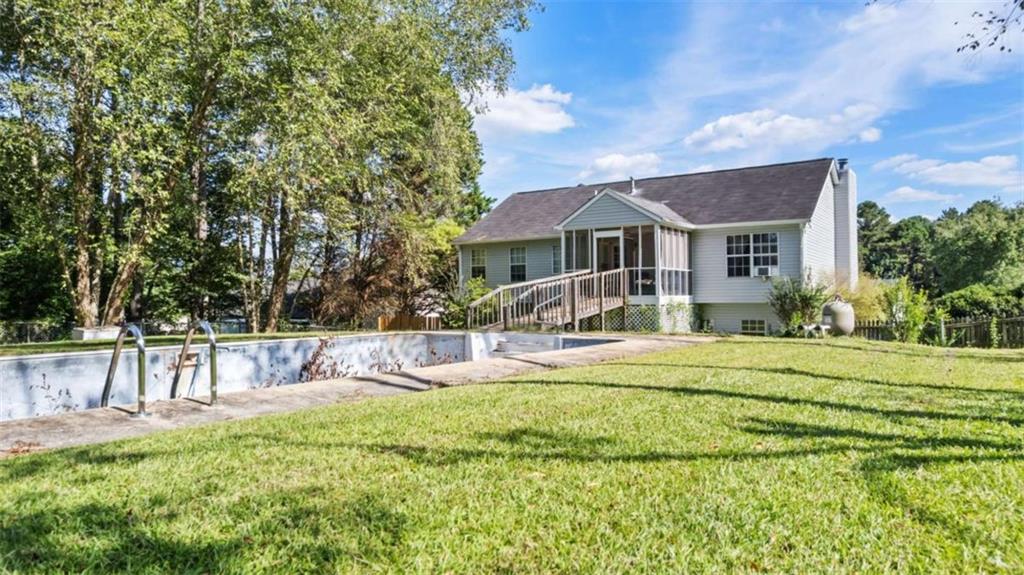 This charming 4 bed, 3 bathroom home offers space, comfort and convenience on a desirable corner lot. The inviting family room features a cozy gas fireplace and flows into a separate dinning area, perfect for gatherings. The screened-in-back porch overlooks a large backyard with an in-ground pool that needs repair but has great potential for summer fun. Inside, the lower lever includes a large bedroom with its own full bath, ideal for guest or private retreat. There's plenty of storage throughout, plus a two car garage. Priced below market value, this home allows the new owner to add their own touch with fresh paint and new carpet/LVP. Conveniently located near shopping and everyday amenities, this property is full of possibilities! Pets, please don't let cats out.