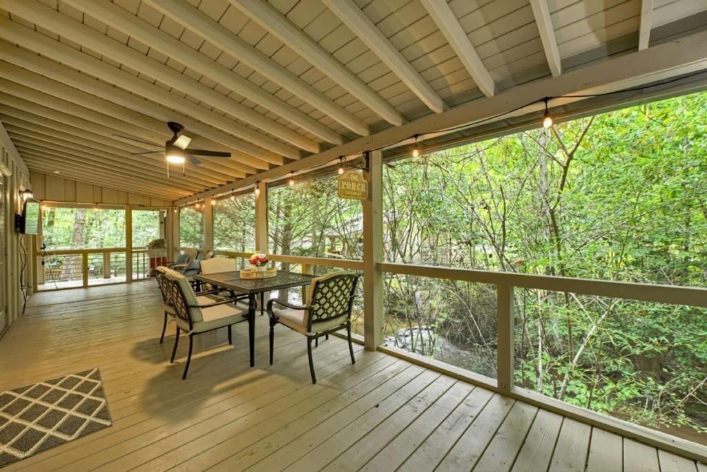 Discover the romance of creekside living in this fully furnished Blue Ridge bungalow, where the soothing sounds of rushing water create an idyllic backdrop for relaxation. Thoughtfully designed for both comfort and charm, the property offers a fire pit lounge beneath the stars, a screened porch perfect for morning coffee or evening wine, and covered parking enhanced by a wired spot for a TESLA charger. Inside, a bright and inviting open plan features a welcoming living area, well-appointed kitchen, two bedrooms, and 1.5 baths, all supported by a recently installed HVAC system for modern efficiency. Just minutes from Downtown Blue Ridge, Lake Blue Ridge, the Toccoa River, and the Aska Adventure Area, this retreat balances romance and recreation with ease. Whether cherished as a private sanctuary or utilized as a lucrative short-term rental investment, this turnkey property captures the essence of North Georgia living — blending natural beauty, modern updates, and effortless convenience.