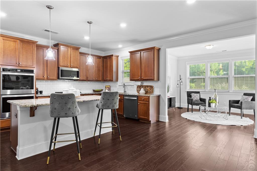 - KitchenBreakfast Bar, Breakfast Room, Cabinets Other, Eat-in Kitchen, Kitchen Island, Pantry Walk-In, Stone Counters, View to Family Room