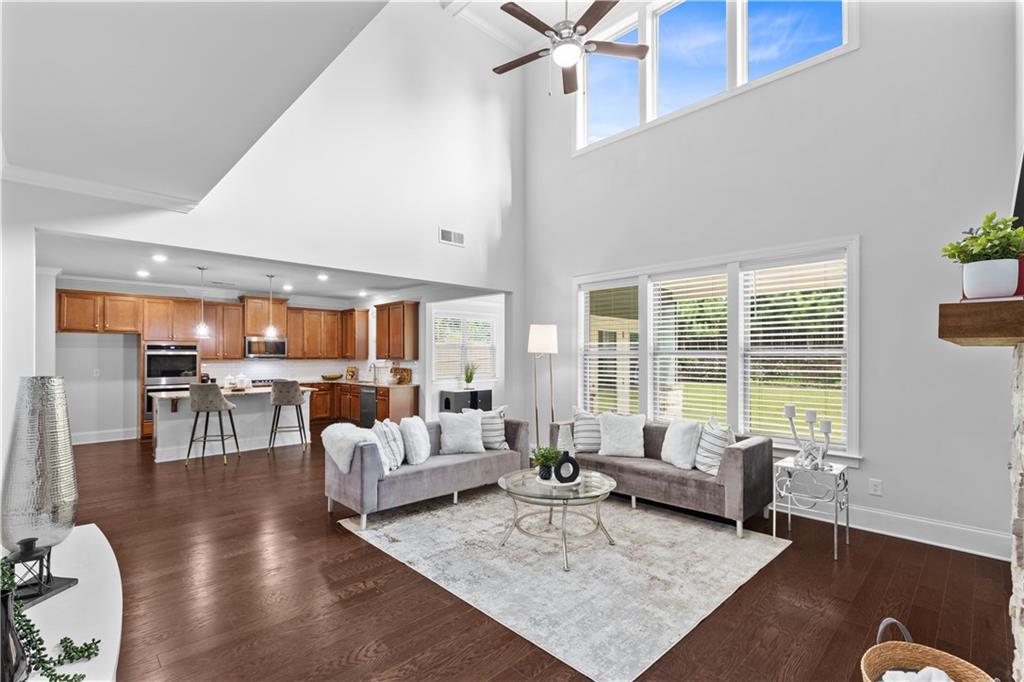 Welcome to this stunning three sided brick home, perfectly positioned in the desirable North Gwinnett High School district. With its beautifully level front yard and timeless brick facade, this residence offers exceptional curb appeal from the start. Inside, you’re greeted by a spacious dining room and a versatile flex room ideal for a home office, study, or formal sitting area. The living room impresses with soaring coffered ceilings and a custom built-in bookshelf, creating a warm and inviting atmosphere for both everyday living and entertaining. The chef’s kitchen is the heart of the home, featuring granite countertops, stainless steel appliances, and a large island designed for gatherings. Just off the kitchen, the bright morning room provides the perfect spot for casual meals or coffee while overlooking the expansive backyard. Step outside to a covered patio, a wonderful setting for al fresco dining, barbecues, or simply relaxing in the privacy of your outdoor retreat. A guest bedroom with a full bathroom completes the main floor, offering comfort and convenience. Upstairs, the owner’s suite is a private sanctuary with a generous walk-in closet, double vanity, soaking tub, and separate shower. Three additional bedrooms and two full bathrooms provide plenty of space for family and guests alike. The large backyard opens up endless possibilities. Whether you dream of a garden, play space, or even a future pool. This home is ideally located with easy access to Sugar Hill City Center, Suwanee Town Center, Mall of Georgia, and Lake Lanier, blending comfort, style, and convenience in one perfect package. Don’t miss the chance to call this exceptional property your new home!