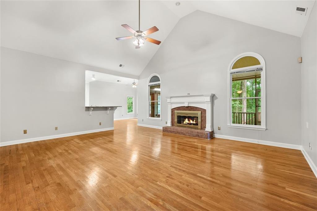 RARE & PRICED TO SELL: Ranch on a Finished Basement! Master Bedroom on the Main and 36 inch wide doors & hallways throughout makes this home handicap accessible if needed. Gorgeous Hardwood floors greet you upon entry and the home opens to the beautiful vaulted fireside family room. Freshly painted interior throughout and two secondary bedrooms with new carpet are connected by a Jack & Jill style bathroom. The Finished Basement is perfect for multi-generational living offering a full kitchen, 1 bedroom & full bathroom, THREE additional "bedrooms" (closets no windows) and family room/dining area. Don't miss the huge unfinished area for a workshop, additional storage, etc. This property is 3 sides brick, fully screened back deck with under decking installed for a dry outdoor living space at the terrace level. Fully fenced backyard with storage shed. Located within the fabulous Arbor Clos community with swim, tennis, a basketball court, playground, & covered pavilion. Sought after schools and superb location - minutes to downtown Sugar Hill with shopping dining, local festivals & the Eagle Theater!