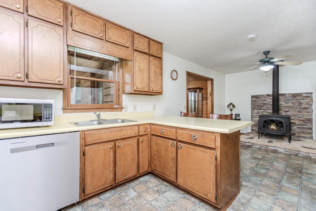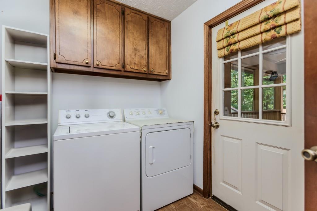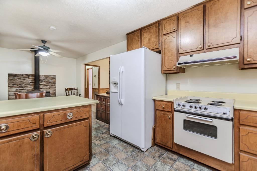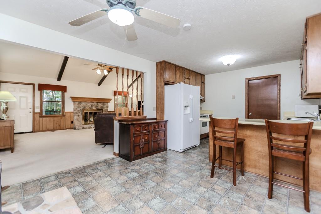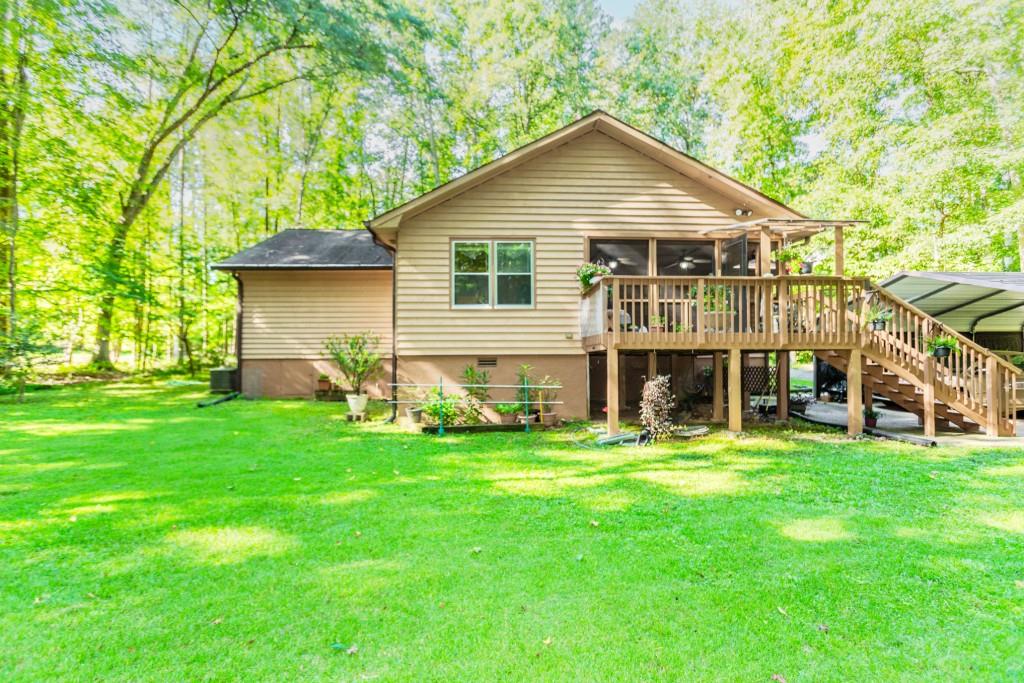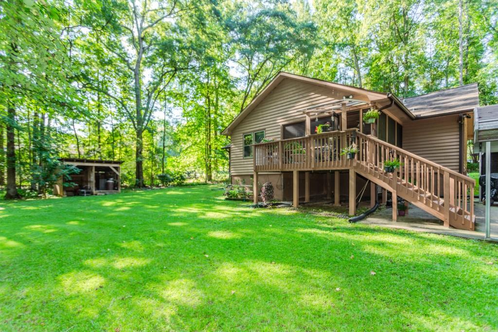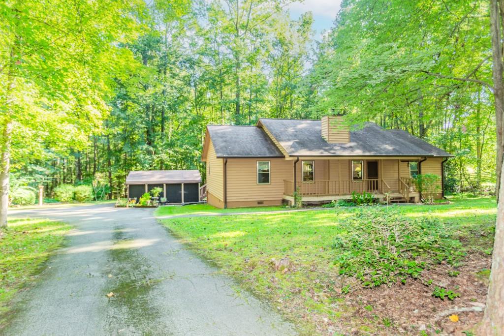 Welcome to this rare opportunity in Jefferson, located in the highly sought-after Jefferson City Schools district. Tucked away at the end of a long, private driveway, this charming ranch home offers three bedrooms and two baths, surrounded by lush greenery and privacy. The inviting front porch leads into a spacious beamed and vaulted family room with a beautiful stone fireplace, the perfect gathering space. The kitchen features a breakfast bar, breakfast nook, and a separate dining room filled with natural light from its surrounding windows. The home features a spacious owner's suite with an abundance of closet space, along with two additional bedrooms that share a full bath. Throughout the home, generous closets provide excellent storage. A thoughtfully designed laundry room provides plenty of space for organization and even a nook for your favorite kitchen gadgets. Step into the screened porch and enjoy peaceful views of the wooded backyard. The outdoor grilling space is ideal for entertaining, while the backyard offers plenty of room for gatherings. Two storage buildings, including one with electricity, provide additional functionality, and the crawl space offers even more storage options. Throughout the home are generous sized closets. Perfectly located near downtown Jefferson and just minutes from I-85, this well-cared-for home combines comfort, convenience, and privacy at the end of a cul-de-sac street, waiting for new owners to love and appreciate it.