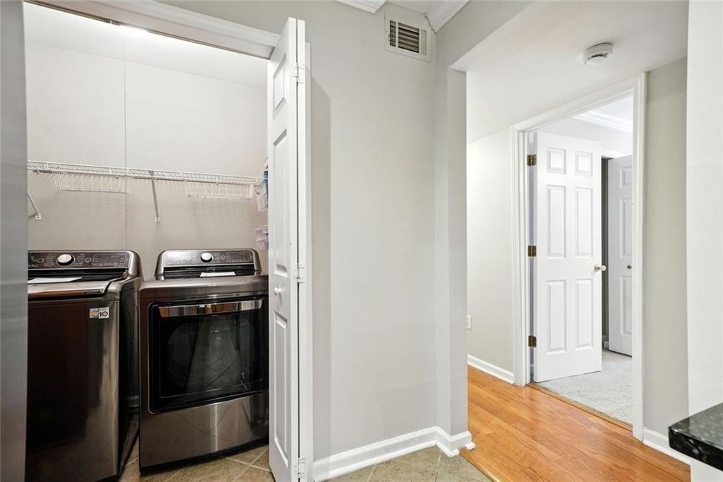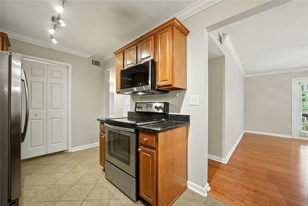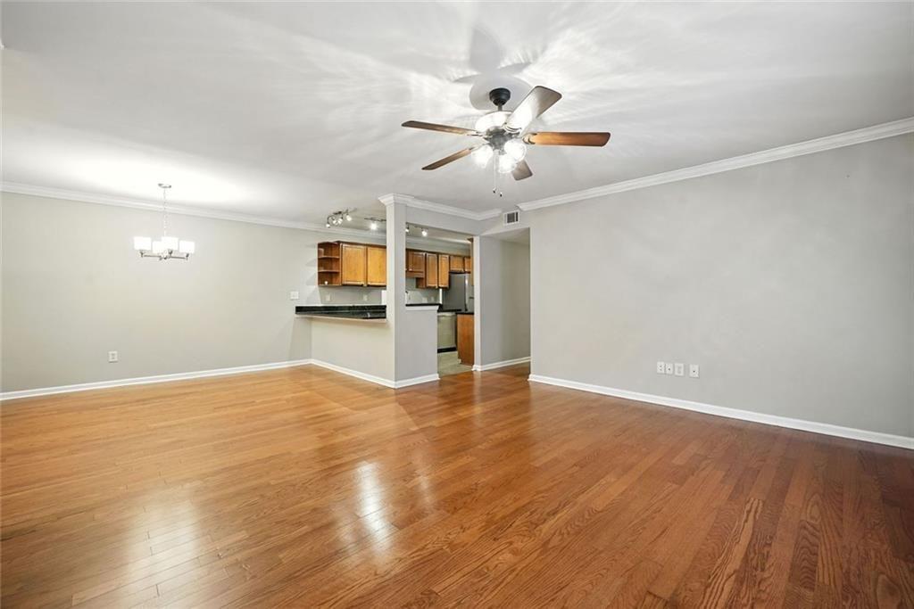 Wonderfully updated and ready to move into 2 Bed, 2 Bath condo in wonderful Sandy Springs gated, swim community. Spacious, light and bright open floor plan featuring hardwood flooring and coat closet. Eat-in kitchen offers granite countertops, breakfast bar, abundant cabinetry, tile flooring, pantry, all appliances to remain, including newer washer/dryer, dishwasher and microwave. Laundry room with built-in cabinetry. The spacious primary bedroom offers a huge walk-in closet. Large secondary bedroom. Enjoy your deck and community pool. This condo is ideally located in Sandy Springs with quick access to I-285, 400, dining, shopping, Morgan Falls, Abernathy Greenway, City Springs, and so much more!
