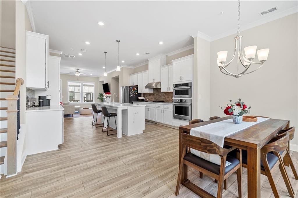 Welcome to your dream home in the heart of Alpharetta! This beautifully designed 3-bedroom, 3.5-bath townhome is located in the highly sought-after Caravelle at Windward Park community, offering upscale living, modern convenience, and an unbeatable location.The main level boasts an abundance of natural light and soaring 10-foot ceilings, creating an open and inviting atmosphere. The gourmet kitchen features professional-grade stainless steel appliances with double ovens, quartz countertops, 42-inch painted cabinetry, and a stylish butler’s pantry. Seamlessly connected are the spacious dining room—large enough to seat 12 people and the cozy living room complete with a gas fireplace. Additional upgrades throughout include: Wide-plank 7” luxury vinyl flooring.Quartz countertops in all bathrooms. Oversized deck ideal for outdoor entertaining.Enjoy a low-maintenance lifestyle with access to premium community amenities, including a resort-style pool, clubhouse, and ample green space for kids and pets. Perfectly located in the Windward area, this home is just minutes from Avalon, Downtown Alpharetta, and the Alpha loop. Commuters will love the walkability to Windward Park & Ride and the close proximity (under 1 mile!) to GA-400.Don’t miss this exceptional opportunity to own in one of Southern Living’s “Best Places to Live.” Schedule your tour today!