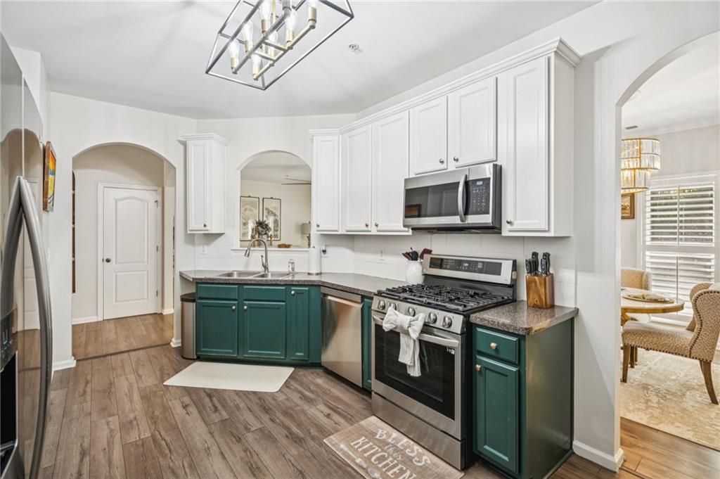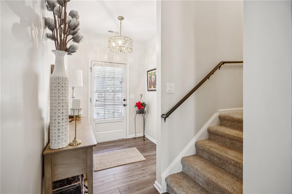 Location! Elegance! Style! Convenience! All in one fabulous home. Perfectly located 2 miles from the Marietta Square, and close to Life University, Kennesaw State University, Dobbins AFB, Cobb County International Airport, shopping, schools, major thoroughfares for ease of travel in an around the city, or north to the mountains. Just 35 minutes to the Atlanta Airport, less than 20 minutes to Truist Stadium for a Braves game, and less than 20 minutes to Kennesaw Mountain to enjoy the scenery and fresh air. All this in the quiet, peaceful, and meticulously maintained gated community of Brownstone Square. Step into over 2100 sq.ft of modern elegance with this beautifully updated three-bedroom, 2.5-bathroom town home. The home exudes class and style while boasting a sleek modern vibe with a new stainless-steel range and dishwasher, smart door openers, a new water heater, and plantation shutters that allow for great natural light. The exterior was freshly painted in 2023, and the interior received stylish and extensive updates in 2022, including new carpet and LVP flooring, and fresh paint throughout in 2024. Enjoy the convenience of a new storm door and contemporary fixtures (with dimmers) on the main level, along with advanced ecobee thermostats. The over-sized primary bedroom is a true retreat, featuring a luxurious new shower, double vanity, soaking tub, and a generous walk-in closet. Residents can also take advantage of the community pool, adding a touch of leisure to this contemporary gem. The peacefulness and serenity of this community only add to the attraction of this beautiful, upgraded, and well-cared-for home.