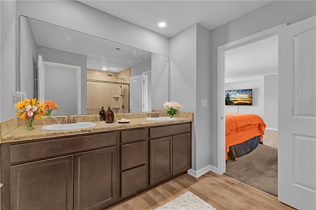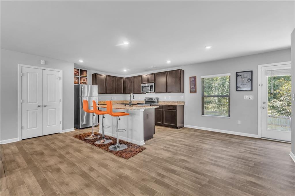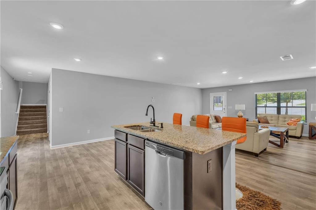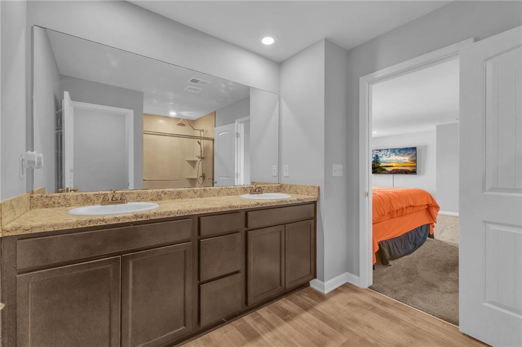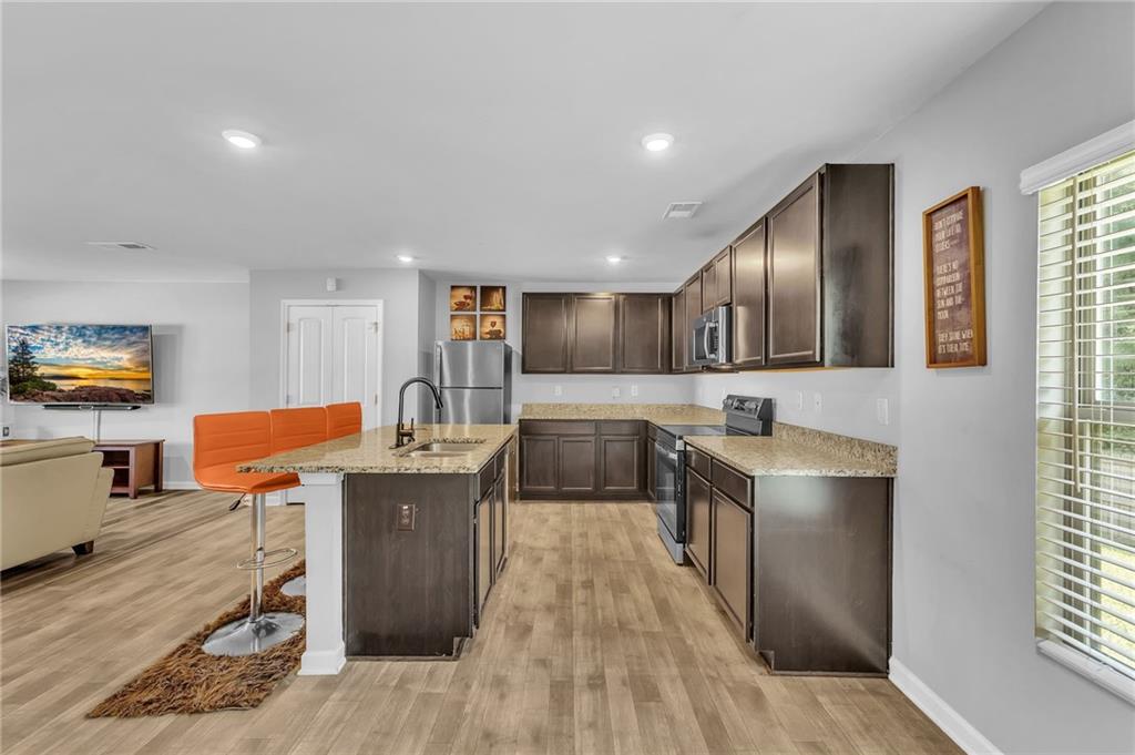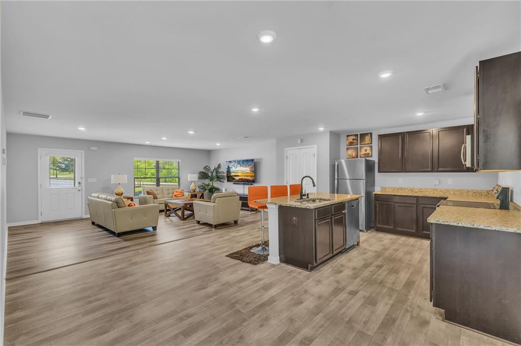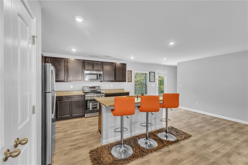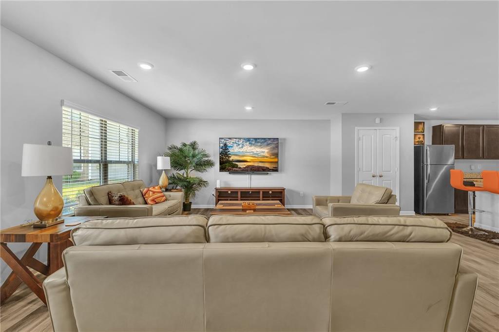 Welcome to 12225 Anchor Way, a striking brick-front residence offering timeless curb appeal and thoughtfully designed spaces. With 4 bedrooms, 2.5 baths, and over 2,450 square feet of living space, this home blends elegance and comfort in every detail. Step inside to an open-concept layout that flows seamlessly from the inviting entryway into the spacious living areas. The kitchen is the heart of the home, featuring dark wood cabinetry, granite countertops, and an abundance of workspace that is perfect for daily living or hosting. Just off the kitchen, the dining and living areas provide effortless connectivity, making gatherings comfortable and inviting. Upstairs, the oversized primary suite offers a true retreat with an ensuite bathroom highlighted by a dual granite vanity, a large shower, and a private water closet. Three additional bedrooms provide flexibility for guests, home office space, or hobbies. The layout ensures everyone has room to spread out while maintaining a sense of warmth and connection. Outdoors, a large fenced backyard creates a private setting with endless possibilities for play, relaxation, or entertaining. The property also features a two-car garage and a welcoming front entry framed with classic brick accents. Beyond the home itself, the community enhances everyday living with sidewalks and streetlights that encourage evening strolls. Conveniently located near shopping, parks, scenic trails, and the Atlanta Motor Speedway, you’ll enjoy both modern convenience and recreational opportunities just minutes away. This home balances elegance, practicality, and charm, offering the space and finishes you’ve been looking for. Schedule your showing today and discover why 12225 Anchor Way is a place you’ll want to call home.