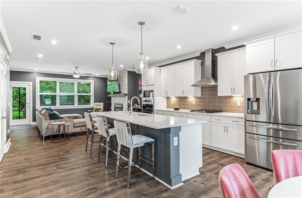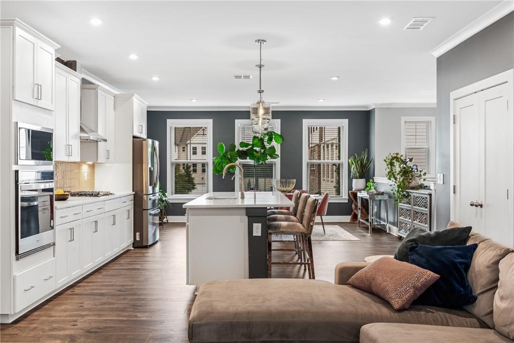 Just an amazing location, snuggled between some of Atlanta's most popular shopping and dining areas, you are less than 20 minutes from The Forum, Downtown Roswell, Downtown Alpharetta, Dunwoody Village and Perimeter Mall and The Avalon! This all-brick townhome not only offers style but super spacious and comfortable. Main level boasts hardwood plank flooring throughout, a cozy stone fireplace, and separate dining area. The kitchen is in the center highlighted by a huge island kitchen, stone counters, gas cooktop stove, stainless steel appliance package, double ovens and custom white cabinetry. Top floor is host to three bedrooms. The owner’s suite has spa like master bath with soaking tub, separate glassed-in shower and double vanities with stone counter tops. The bottom floor is and open bedroom/flex space with full bath and could be great area for guest bedroom or basement/rec space.