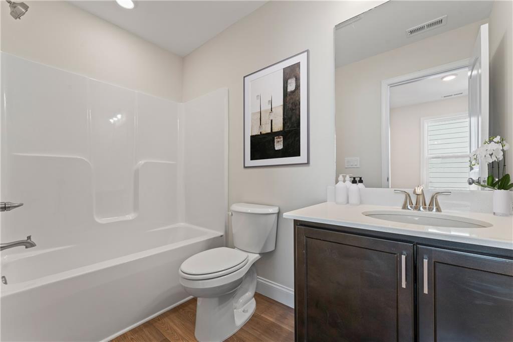 NEW LOWER PRICE! Savor mornings on your covered patio, afternoons by the pool, and evenings with friends at the clubhouse - that's life at Heritage Pointe. This private gated golf course community in West Paulding sits along the award-winning Frog and offers lush scenery, small-town charm, and full access to all The Georgian amenities, including a waterpark, tennis courts, walking trails, playgrounds, and green spaces. Low-maintenance lifestyle as HOA handles lawn maintenance means more time to explore Villa Rica's vineyards, parks, and historic gold mines, with Atlanta just an hour away. Move-in ready now, 49 Masters Drive features the Rabun A plan with 3 bedrooms, 3 baths, and stylish upgrades throughout. The heart of the home is the open-concept kitchen, perfect for entertaining. It boasts crisp white cabinets, elegant Carrara Breve Quartz countertops, a stylish tile backsplash, and top-of-the-line stainless steel appliances. Thoughtful details like under-cabinet lighting add a warm, inviting glow. The owner's suite includes a coffered ceiling, private patio access, two walk-in closets, and a spa bath with Arctic White Quartz, a tiled stepless entry shower with bench, and dual vanities. Upstairs, a large loft, bonus bedroom & bath offers space for guests or game night. Luxury Vinyl Plank flooring flows through the main living areas for style and durability. The 12x20 covered patio is perfect for entertaining or relaxing, and a two-car garage with storage keeps essentials organized. Schedule your tour today before this showcase is gone.