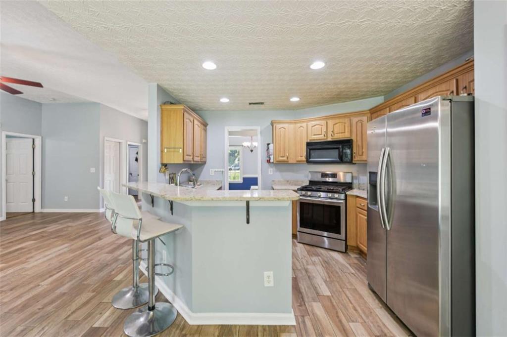 - KitchenBreakfast Bar, Solid Surface Counters, View to Family Room