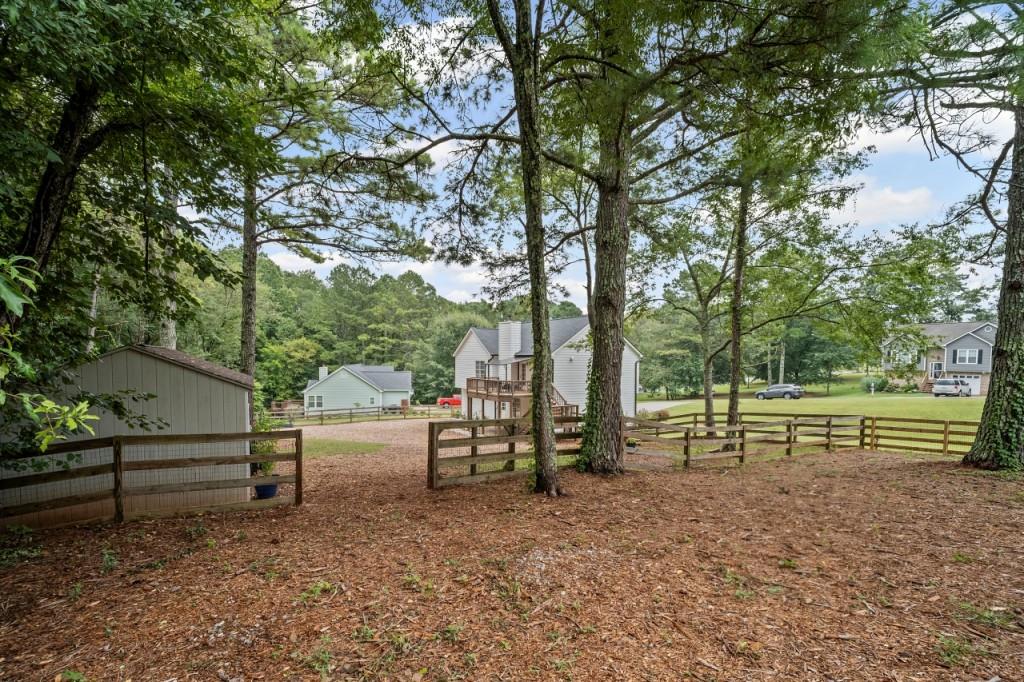 Welcome to this beautifully maintained, move-in ready home on a rare .9-acre corner lot with no HOA! This property offers the perfect blend of privacy and convenience, all just roughly 10 minutes from Downtown Woodstock, Hwy 92, shopping, dining, and parks, including the soon to be Little River Park only 5 minutes away.Inside, you'll find thoughtful updates throughout. The bright family room features soaring ceilings and abundant natural light. The open-concept kitchen shines with updates done in 2024 including quartz countertops, a double sink and touch-free faucet, induction range, vented hood system to outside, backsplash, and upgraded lighting. The spacious primary suite boasts large double windows for plenty of morning sunshine. A generous storage room sits conveniently beside the laundry room, and the two-car garage still leaves ample space for hobbies or a workshop. Major updates provide peace of mind: a brand-new HVAC system with ducting (May 2025), new roof (June 2025), exterior and interior paint (July 2024), plus new gutters and downspouts with leaf guards. Step outside and enjoy your morning coffee on the covered deck, rain or shine, while watching deer and birds in the huge fenced backyard. The fenced backyard has been extended which includes a large shed with power and water, and the front yard has been beautifully freshly landscaped. Whether it's relaxing on the deck, gardening, or enjoying the quiet surroundings, this home offers both comfort and lifestyle, all with the freedom of no HOA.