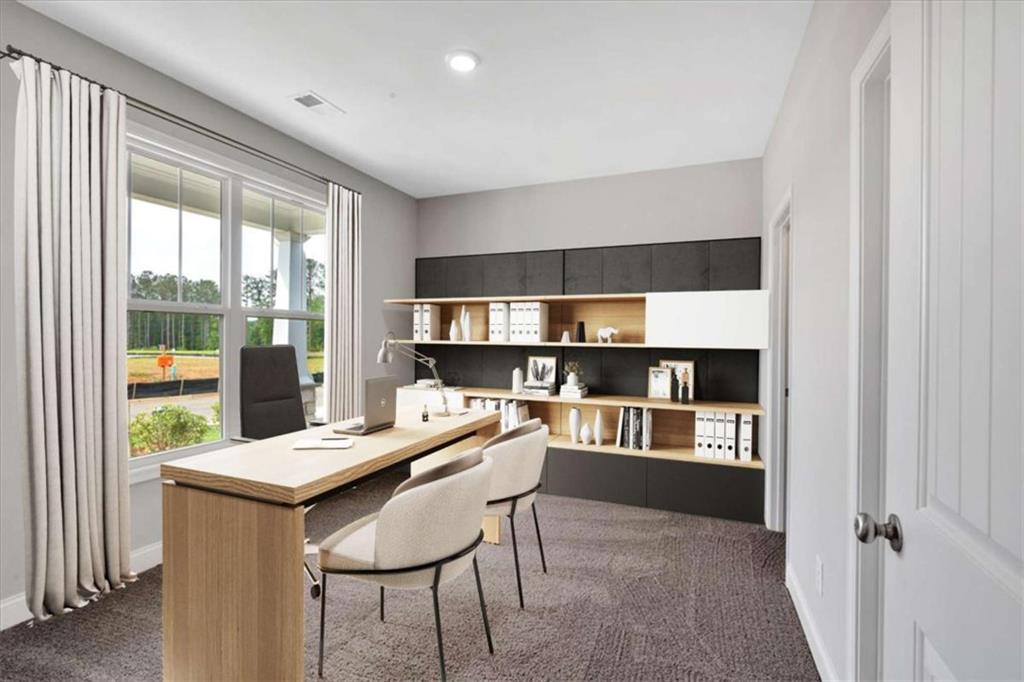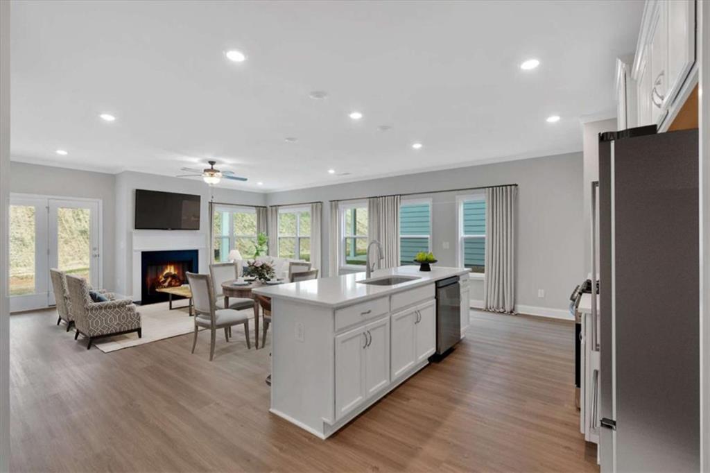 Wake up to golf course views, spend your afternoons by the pool, and end the day with friends at the clubhouse - that's everyday life at Heritage Pointe. This private gated golf course community in West Paulding sits along the award-winning Frog and offers lush scenery, small-town charm, and full access to all The Georgian amenities, including a waterpark, tennis courts, walking trails, playgrounds, and green spaces. Low-maintenance lifestyle means more time for Villa Rica's vineyards, parks, and historic gold mines, with Atlanta just an hour away. Move-in ready now, Lot 154 features our highly desired Rabun plan, filled with thoughtful details and stylish finishes. The bright kitchen showcases LG appliances, a gas stove, oversized island, quartz countertops, and Cotton colored cabinets with Java-painted accents. The great room offers a cozy fireplace, perfect for entertaining or relaxing. The oversized owner's suite has two walk-in closets, a coffered ceiling, and a spa bath with Frost White quartz, tiled shower with bench, and double vanities. Upstairs, a loft plus a bedroom and full bath provides space for guests or game night. Enjoy a covered patio and a two-car garage with extra storage. Schedule your tour today before this showcase is gone.