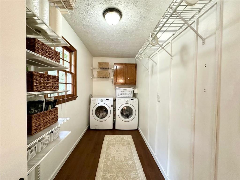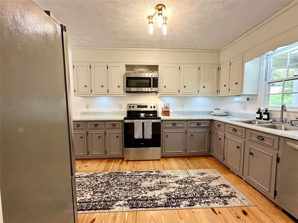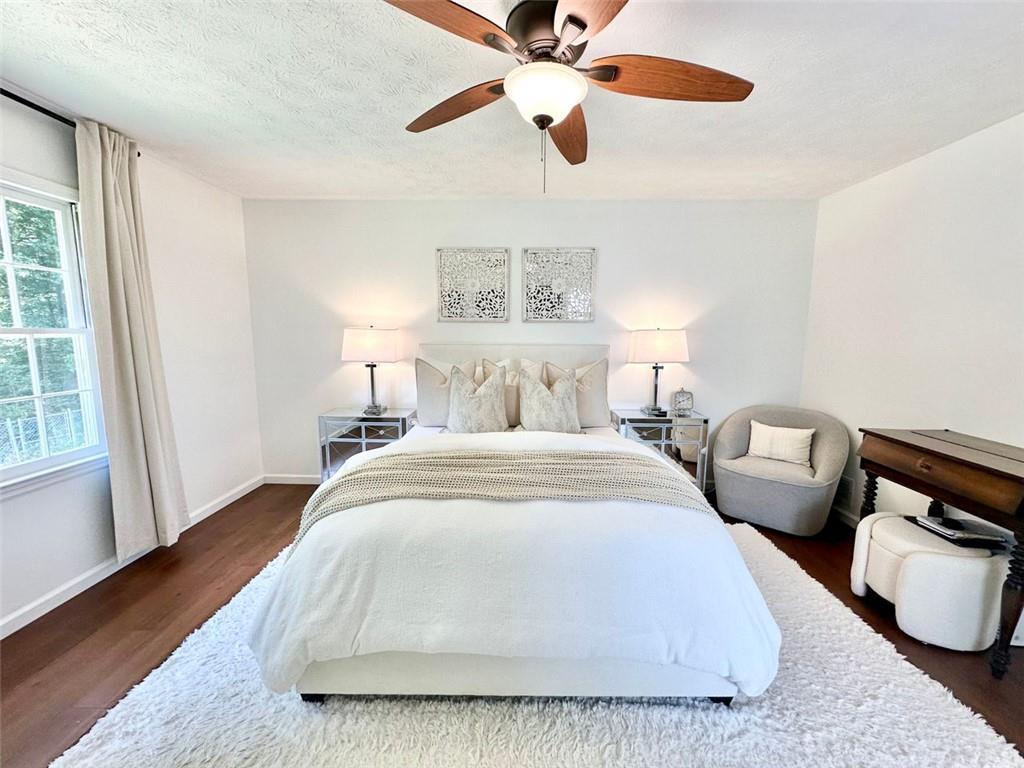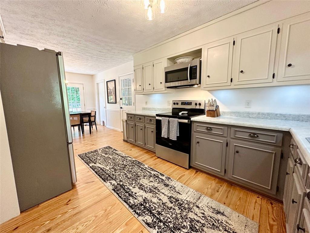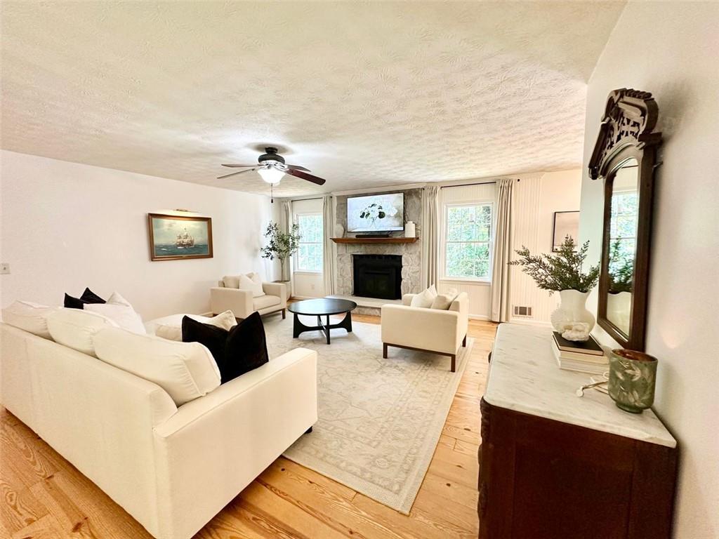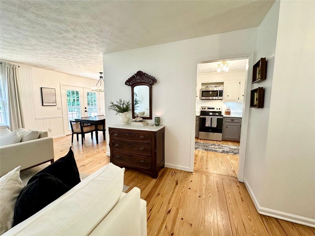 Welcome to your new home! This stunning, move-in-ready ranch offers the perfect blend of modern updates and timeless charm along a wooded, half-acre lot in a serene, established neighborhood with NO HOA. Step inside and be captivated by the open, light-filled living space, featuring beautiful pine wood flooring and a cozy, stone-accented fireplace that creates a warm and inviting atmosphere. The entire interior has been freshly painted, complemented by updated lighting and modern hardware throughout. Retreat to your tranquil oasis in the newly renovated master bathroom, a luxurious space designed for ultimate relaxation. The home offers three spacious bedrooms, each with generous closets, along with a large pantry & laundry room, linen closet and a bonus storage room in the garage. Relax on the rocking chair front porch or head to the backyard to enjoy the spacious deck overlooking a large, fenced-in yard—perfect for entertaining, family fun, and pets. This home's unbeatable location is the epitome of convenience. You're just minutes from Hwy 400 at Exit 13, New Hope Elementary and the highly-anticipated Cumming City Center. Enjoy easy access to the Cumming Fair Grounds, Fowler Park, and Big Creek Greenway for outdoor recreation. Recent updates ensure peace of mind, including a freshly serviced septic tank (2025), a new HVAC system with furnace and A/C (2021), newer water heater (2019), a new smart garage door opener (2020), and a Nest thermostat. The sale also includes all appliances, even the washer and dryer, making this a truly turn-key opportunity. Don't miss your chance to own this remarkable home in a highly sought-after location!
