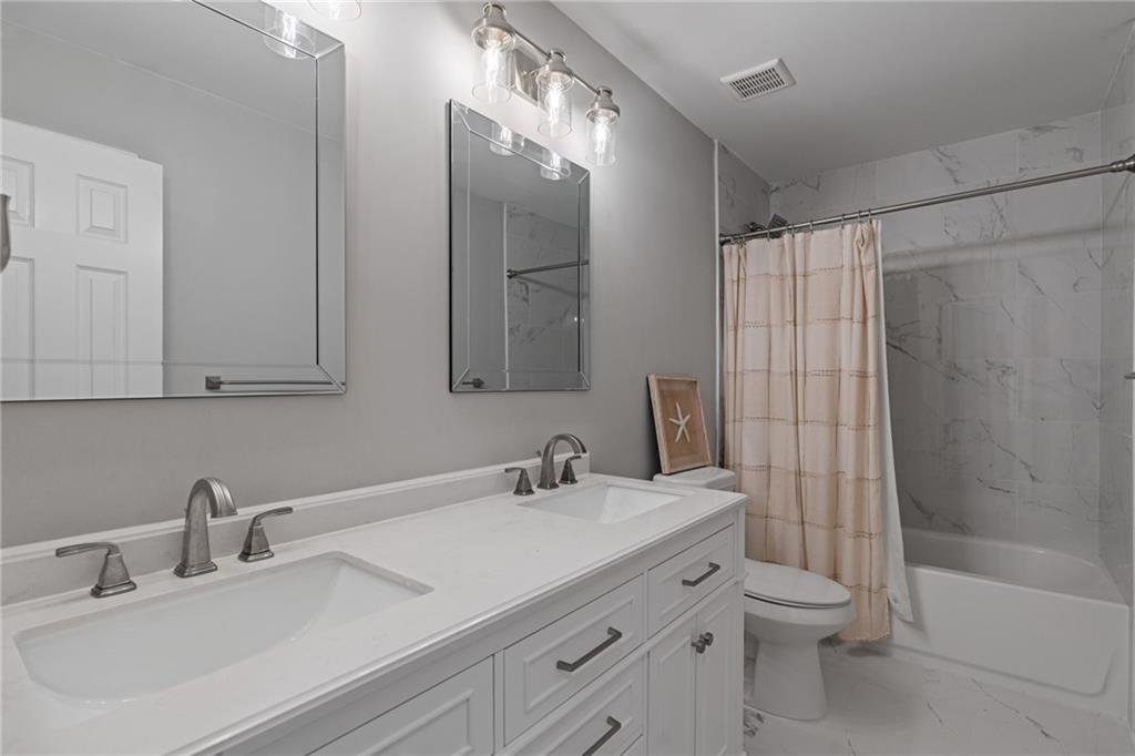 This spectacular east-facing ranch proves you really can have it all—style, space, privacy, and Lake Lanier living without the HOA drama (because who needs a committee telling you where to park your boat?). Fully renovated and move-in ready, it even comes with all appliances—so instead of waiting for a Home Depot delivery, you can head straight to planning your first boat day. Walk to Bald Ridge Campground or zip 3 miles to Tidwell Park & Boat Launch and slide right into South Lake Lanier. With parking for your boat, RV, jet skis, and every other oversized toy you’ve collected, weekends practically throw themselves a party. Speaking of parties—the outdoor living here is begging for string lights, good music, and a group chat titled Patio Vibes Only. Or, if you prefer a quieter scene, the oversized sunroom is ideal for sipping coffee…or cocktails…while you spy on the wildlife wandering past your fenced backyard. Inside, the open floor plan brings the drama (the good kind) with soaring ceilings and custom finishes. The kitchen is so big it could double as the set of a cooking show, complete with quartz countertops, stainless steel appliances, custom cabinetry, and an island large enough to host a charcuterie spread that could feed all of Forsyth County. The main-level primary suite is basically a private spa—with its own fireplace and a marble walk-in shower featuring dual shower heads (yes, dual, because one is not enough). Downstairs, the finished terrace level is the ultimate hangout: a wet bar, office, massive media room, and a private suite with a full bathroom. The terrace level has its own entrance from the garage, and it can double as a standalone apartment: Translation: perfect for in-laws, adult kids, or your new side hustle as a landlord. With a 4-year-old roof and gutters, a 4-year-old deck, a newer septic system, and a laundry list of upgrades, you’ll have more time for lake life and less time calling contractors. All this, just minutes from GA-400, the new Cumming City Center, Northside Forsyth Hospital, shopping, and the North Georgia Mountains. 4050 Vintage Court isn’t just a house—it’s your new headquarters for boating, brunching, and unapologetic relaxing.