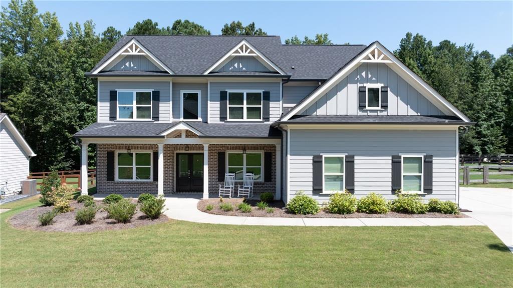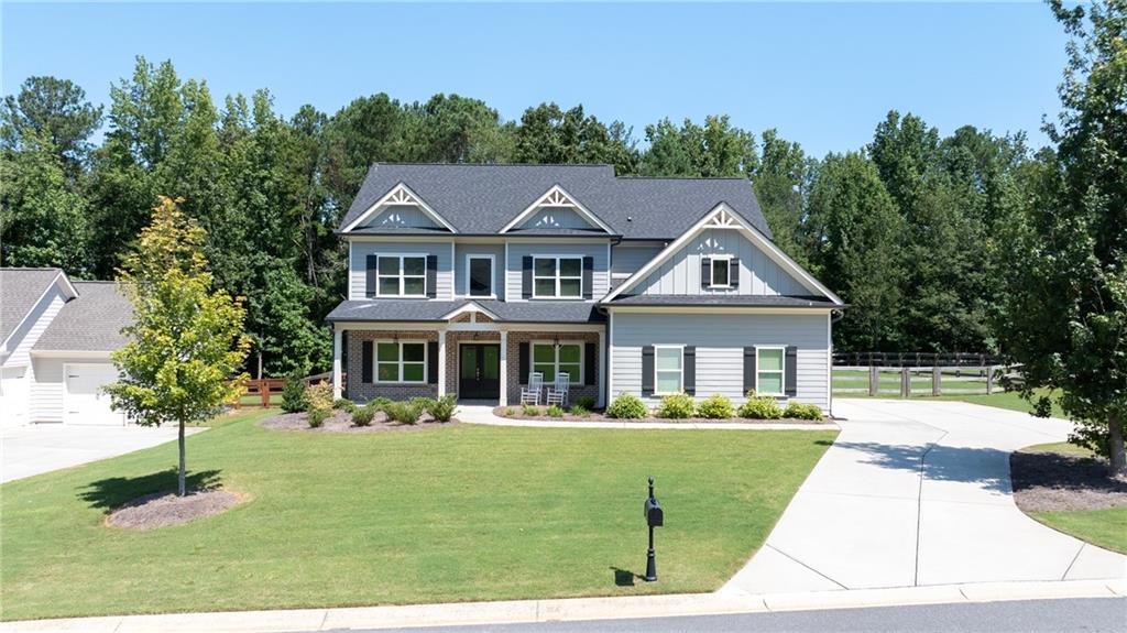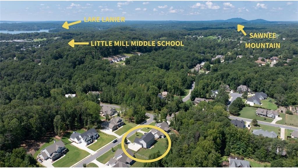 Practically brand new construction by Rivermont Homes (2022)! Welcome to this beautifully designed four-bedroom, three-bath home with three-car garage on over half an acre with a large, fenced backyard in Coopers Ridge. This beautifully maintained and well established Community has Resort style amenities featuring a pool with a slide and mushroom splash pad, clubhouse, and two lighted tennis courts / pickleball courts. Close to Lake Lanier, Minutes from GA 400, Conveniently Located to All Your Shopping Needs and Highly Sought After East Forsyth High School District. A covered front porch opens to a light-filled two-story foyer and open-concept living, perfect for entertaining. The family room greets you with a cozy fireplace and a wall of windows with serene backyard views. The new kitchen has shaker white cabinets, soft-close drawers/doors, stainless appliances, granite counters, a farmhouse sink, and a large pantry. The main level includes a guest bedroom with full bath, formal dining, and a flex room/office/den. Upstairs, the spacious primary suite has a tray ceiling, his and hers large walk-in closets, and a spa-like bath with dual vanities, soaking tub, and oversized shower. Two additional bedrooms both have large walk-in closets and share a Jack-and-Jill bath, and a loft offers flexible space for an office, craft room, playroom, or teen room. A dedicated laundry room adds convenience. The deep 3-car garage has built-ins for organization and additional storage. Enjoy a level backyard with a spacious patio, ideal for year-round relaxation and future additions. With low-maintenance exterior finishes, a security system, and access to top community amenities—this home truly has it all.