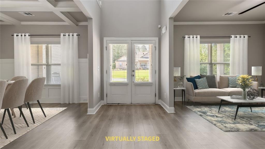 - FeaturesCoffered Ceiling(s), Disappearing Attic Stairs, Double Vanity, Entrance Foyer 2 Story, High Ceilings 9 ft Lower, High Ceilings 9 ft Main, High Ceilings 9 ft Upper, High Speed Internet, His and Hers Closets, Tray Ceiling(s), Walk-In Closet(s)