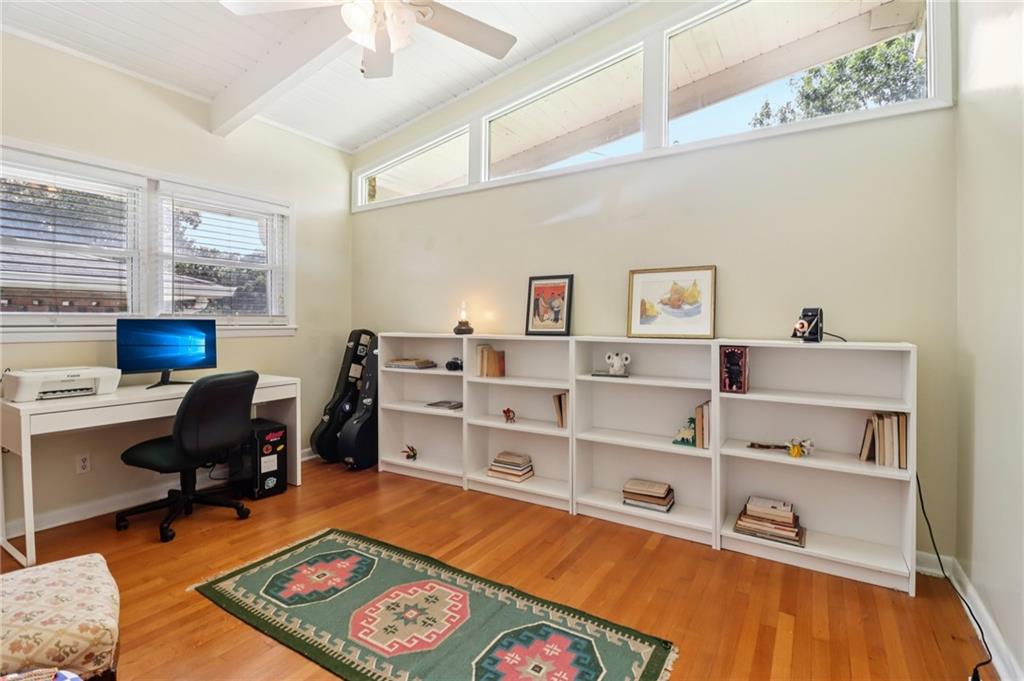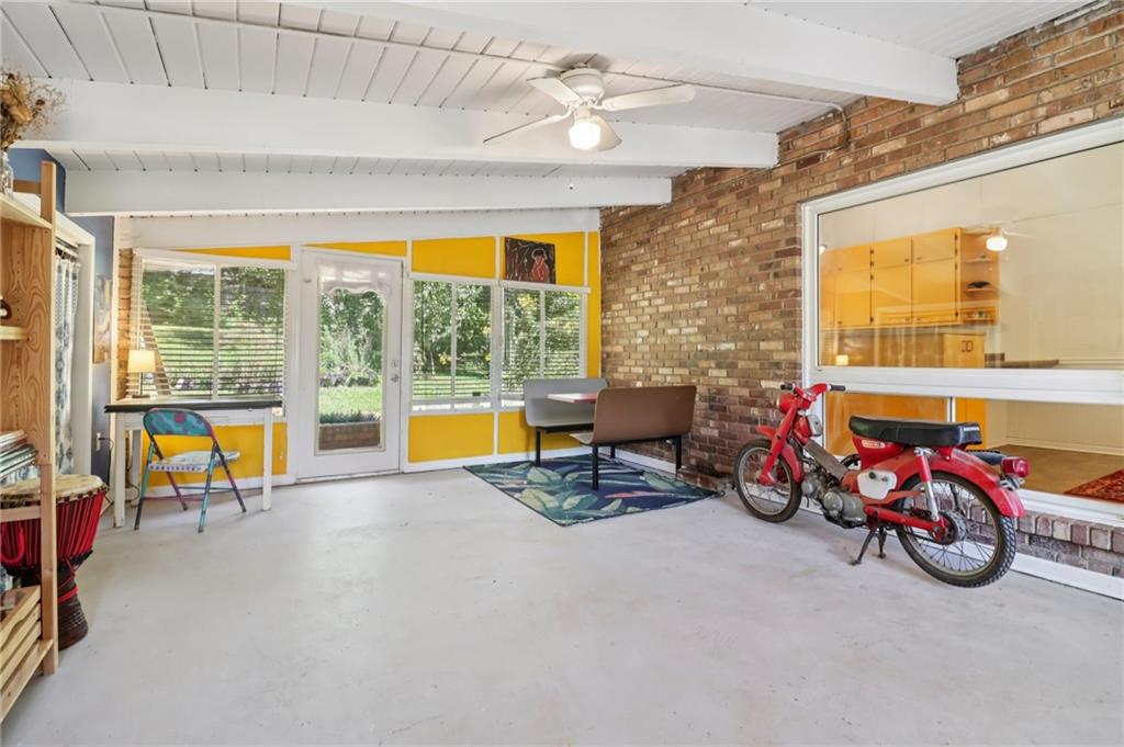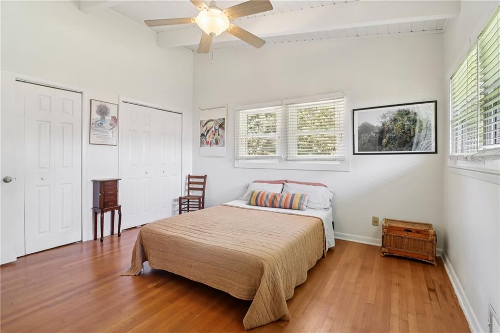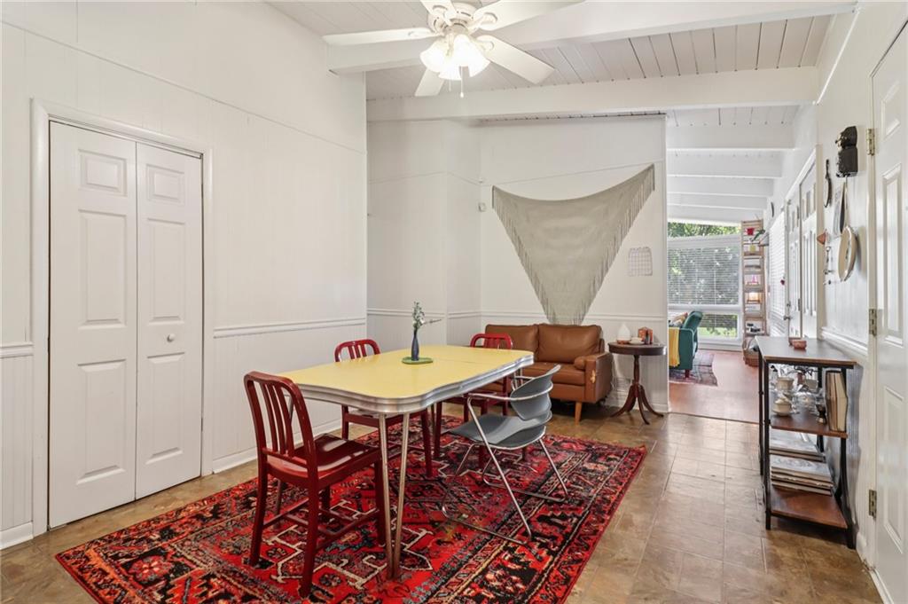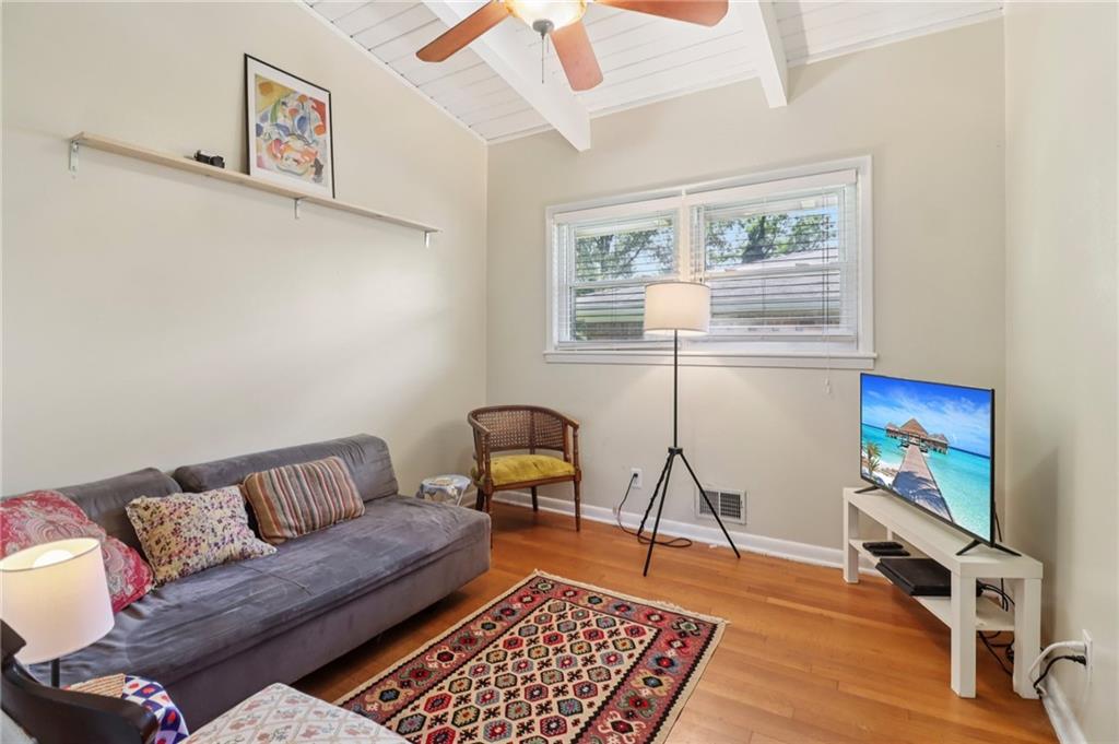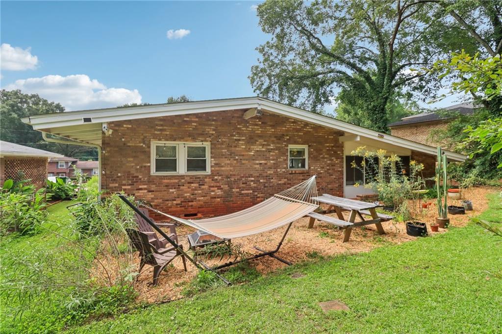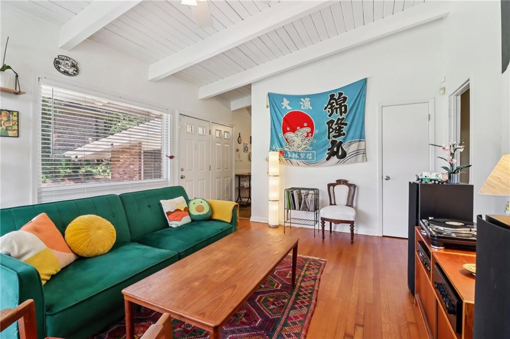 Midcentury character meets modern comfort at 2428 Parkland Drive. This 3-bedroom, 2-bath home with bonus room is a striking example of Frank Lloyd Wright-inspired architecture, with vaulted ceilings, exposed beams, and walls of windows that flood the interior with natural light. Original hardwoods and preserved vintage tile blend seamlessly with thoughtful updates, creating a home that honors its history while feeling fresh and contemporary. The large bonus room adds flexibility for a home office, gym, or media space. Outside, the private backyard is designed for entertaining with a custom patio and garden retreat, perfect for gatherings or quiet mornings. Located in a peaceful residential pocket, the home offers quick access to Decatur, East Atlanta, and Grant Park. N.H. Scott Park is right down the street with tennis and basketball courts, green space, and a new pool underway. For buyers seeking style, space, and convenience, this home delivers. Bold architecture, modern updates, and a prime intown location make 2428 Parkland Drive a rare opportunity.