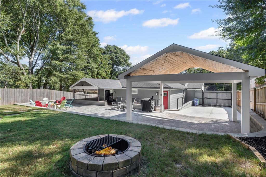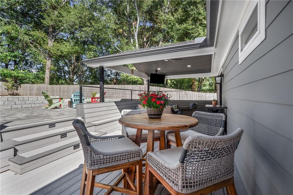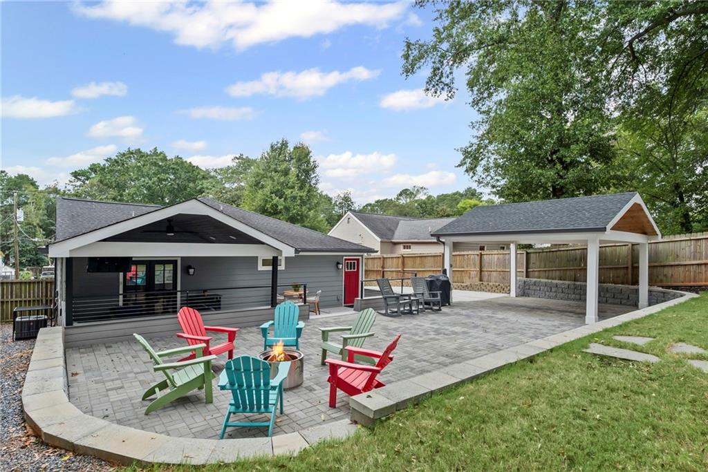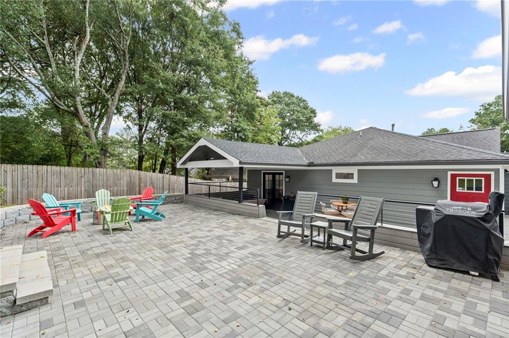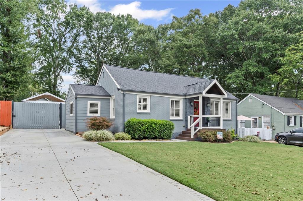 Welcome to this beautifully renovated 4-bedroom, 3-bath brick ranch in East Lake. Nestled on a quiet street near East Lake Golf Course and Downtown Decatur, with quick access to major highways, this home pairs comfort and style with an unbeatable location. Blending modern updates with timeless charm, this home is designed for gathering, relaxing, and enjoying both indoor and outdoor living. At the heart of the home is the open living, dining, and kitchen area—an ideal space to connect with family and friends. Sunlight pours through the windows, highlighting original hardwood floors and plantation shutters. The family room, with its shiplap accent wall, built-ins, and cozy electric fireplace, creates a comfortable spot to unwind. The dining area features a wet bar with a wine fridge, perfect for entertaining, while the kitchen’s large island, generous cabinet space, and new refrigerator make meal prep effortless. The primary suite offers a private retreat with French doors to the backyard, a spa-inspired bath with soaking tub and tile shower, and a walk-in closet. Three additional bedrooms, each with thoughtful touches, and two full guest baths ensure space for everyone. A laundry room with built in storage keeps daily routines organized. Step outside to experience the home’s true showpiece—a custom-designed backyard built for enjoyment. A Trex wraparound deck with built-in seating and lighting, a covered section and a large stone patio, create seamless spaces for dining, relaxing, or entertaining. Additionally, the fenced yard offers grassy play space, a 2-car carport with automatic gate for privacy, and a 16x12 storage shed. Smart features throughout the home, fresh paint inside and out, and systems only six years old bring convenience and peace of mind.