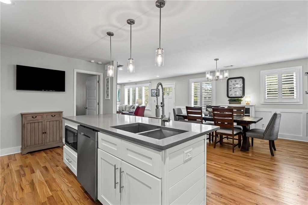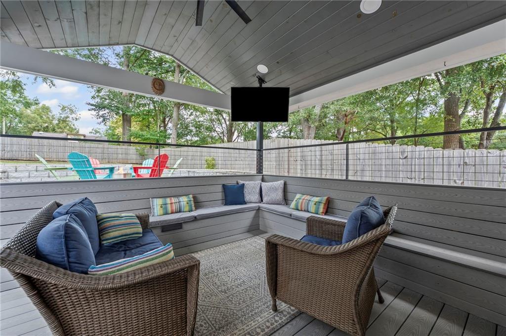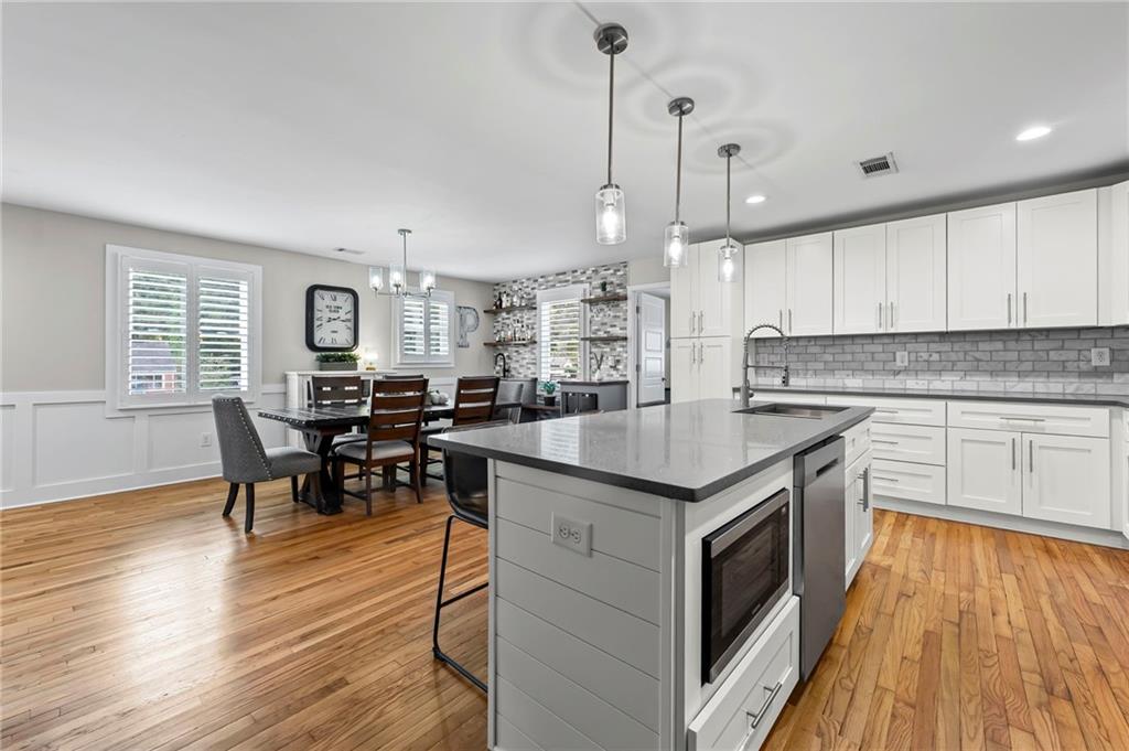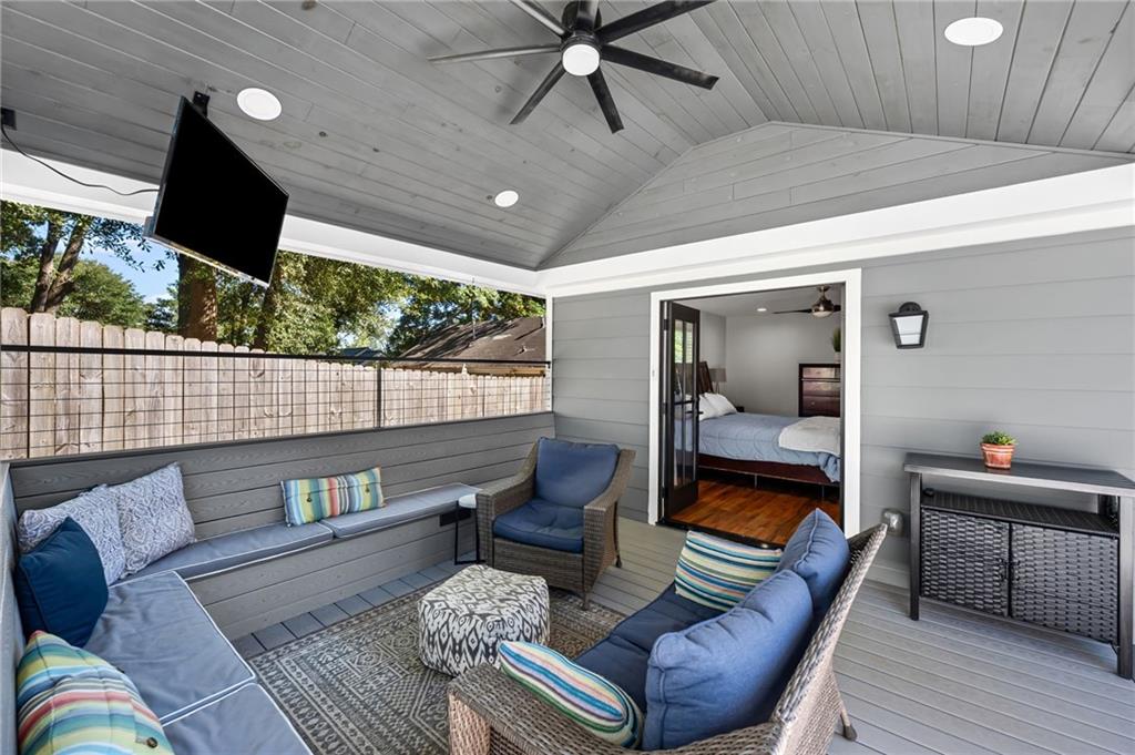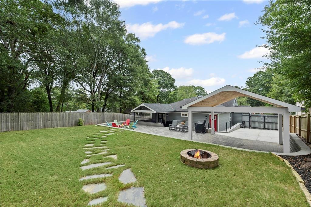 Welcome to this beautifully renovated 4-bedroom, 3-bath brick ranch in East Lake. Nestled on a quiet street near East Lake Golf Course and Downtown Decatur, with quick access to major highways, this home pairs comfort and style with an unbeatable location. Blending modern updates with timeless charm, this home is designed for gathering, relaxing, and enjoying both indoor and outdoor living. At the heart of the home is the open living, dining, and kitchen area—an ideal space to connect with family and friends. Sunlight pours through the windows, highlighting original hardwood floors and plantation shutters. The family room, with its shiplap accent wall, built-ins, and cozy electric fireplace, creates a comfortable spot to unwind. The dining area features a wet bar with a wine fridge, perfect for entertaining, while the kitchen’s large island, generous cabinet space, and new refrigerator make meal prep effortless. The primary suite offers a private retreat with French doors to the backyard, a spa-inspired bath with soaking tub and tile shower, and a walk-in closet. Three additional bedrooms, each with thoughtful touches, and two full guest baths ensure space for everyone. A laundry room with built in storage keeps daily routines organized. Step outside to experience the home’s true showpiece—a custom-designed backyard built for enjoyment. A Trex wraparound deck with built-in seating and lighting, a covered section and a large stone patio, create seamless spaces for dining, relaxing, or entertaining. Additionally, the fenced yard offers grassy play space, a 2-car carport with automatic gate for privacy, and a 16x12 storage shed. Smart features throughout the home, fresh paint inside and out, and systems only six years old bring convenience and peace of mind.