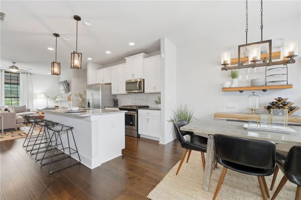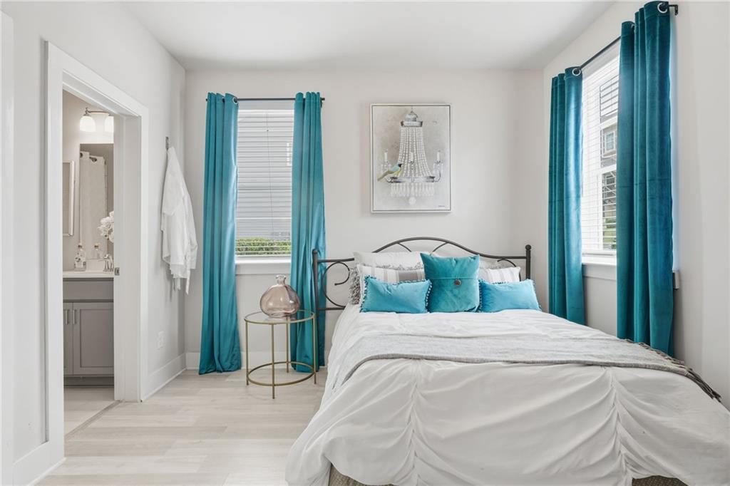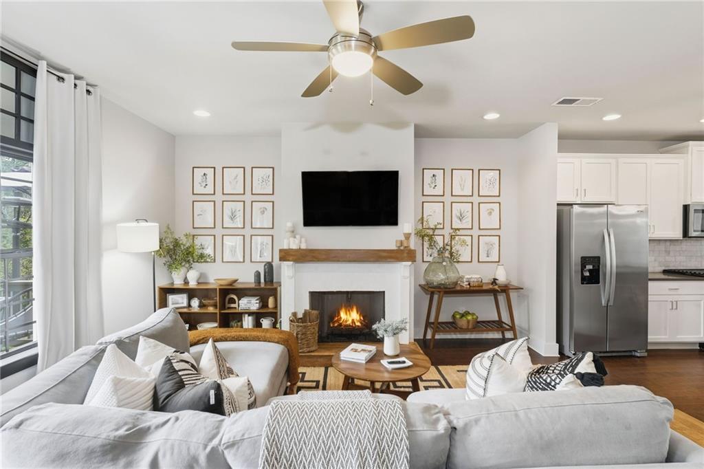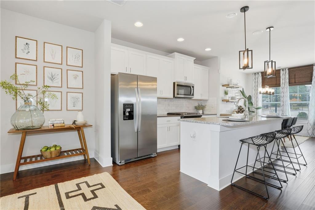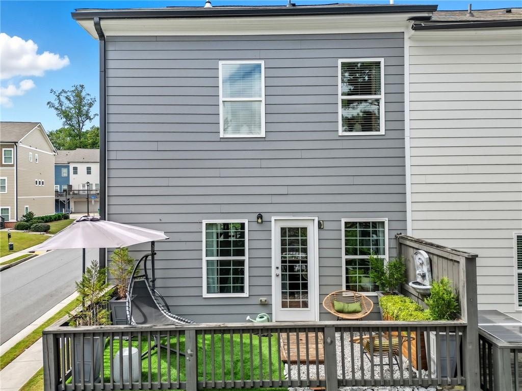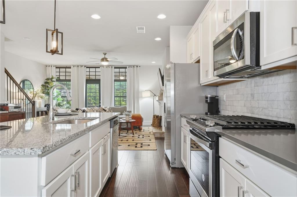 Welcome to this stunning end-unit, three-level townhome in the highly desirable gated community of Kensington Gates. Step through the charming foyer and be greeted by soaring ceilings and an open, airy layout. The dining area is ideal for gatherings, flowing seamlessly into the modern kitchen featuring a large island, sleek finishes, and a spacious pantry. The cozy living room centers around a rustic fireplace and opens to a private deck overlooking serene woods—offering a peaceful retreat instead of a view of neighboring homes. Upstairs, you’ll find two generous bedrooms, each with walk-in closets and private baths, along with a conveniently located laundry room. The lower level includes a third bedroom with its own bath—perfect for guests or a home office. A built-in hall tree with a bench leads to the two-car garage. This newer, well-maintained community offers fantastic amenities including a swimming pool and dog park. Located just minutes from Chamblee, Brookhaven, Buckhead, and all of Atlanta’s top dining and attractions—with the exciting Lotus Grove Development on the horizon—this home combines comfort, convenience, and growth potential in one incredible package. Up to $21,000 in down payment assistance available to qualified homebuyers from Preferred Lender!