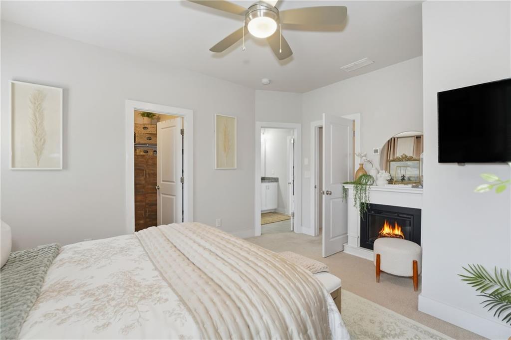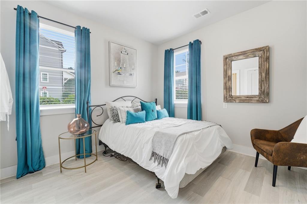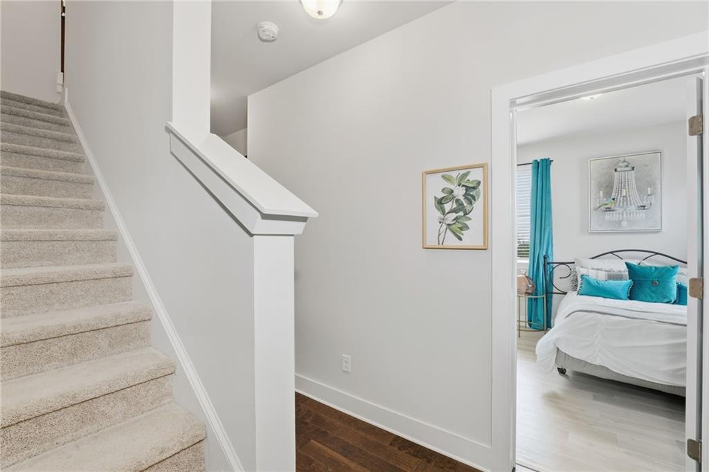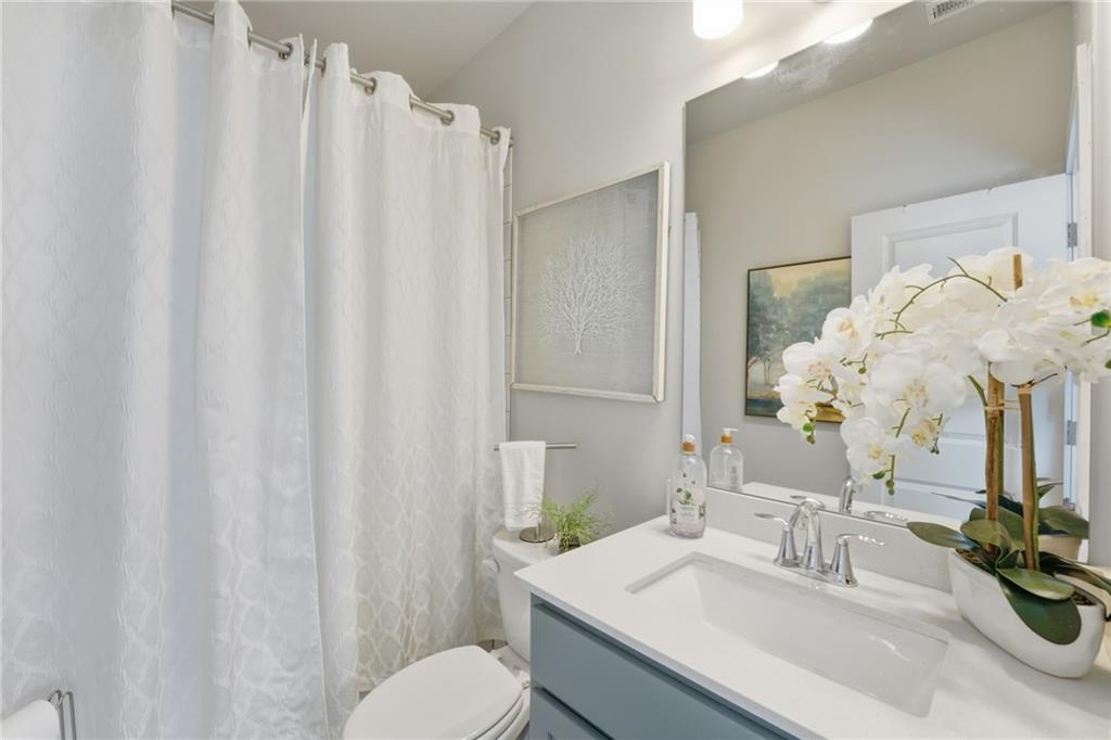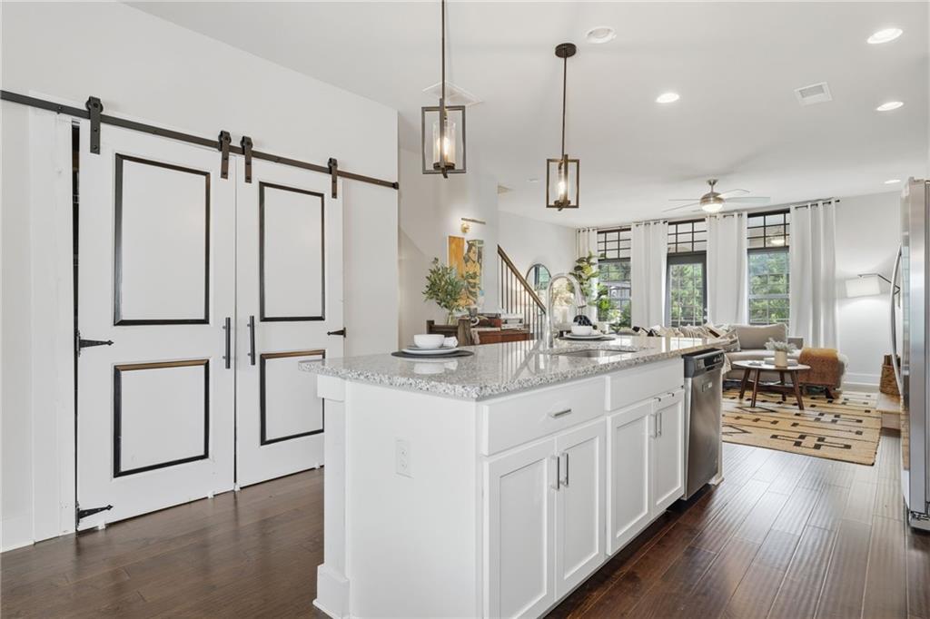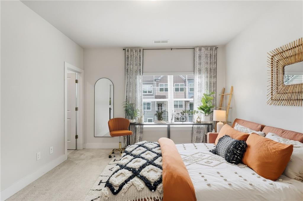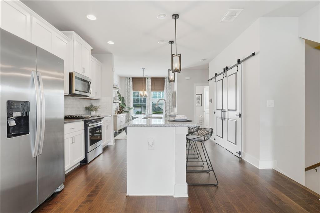 Welcome to this stunning end-unit, three-level townhome in the highly desirable gated community of Kensington Gates. Step through the charming foyer and be greeted by soaring ceilings and an open, airy layout. The dining area is ideal for gatherings, flowing seamlessly into the modern kitchen featuring a large island, sleek finishes, and a spacious pantry. The cozy living room centers around a rustic fireplace and opens to a private deck overlooking serene woods—offering a peaceful retreat instead of a view of neighboring homes. Upstairs, you’ll find two generous bedrooms, each with walk-in closets and private baths, along with a conveniently located laundry room. The lower level includes a third bedroom with its own bath—perfect for guests or a home office. A built-in hall tree with a bench leads to the two-car garage. This newer, well-maintained community offers fantastic amenities including a swimming pool and dog park. Located just minutes from Chamblee, Brookhaven, Buckhead, and all of Atlanta’s top dining and attractions—with the exciting Lotus Grove Development on the horizon—this home combines comfort, convenience, and growth potential in one incredible package. Up to $21,000 in down payment assistance available to qualified homebuyers from Preferred Lender!