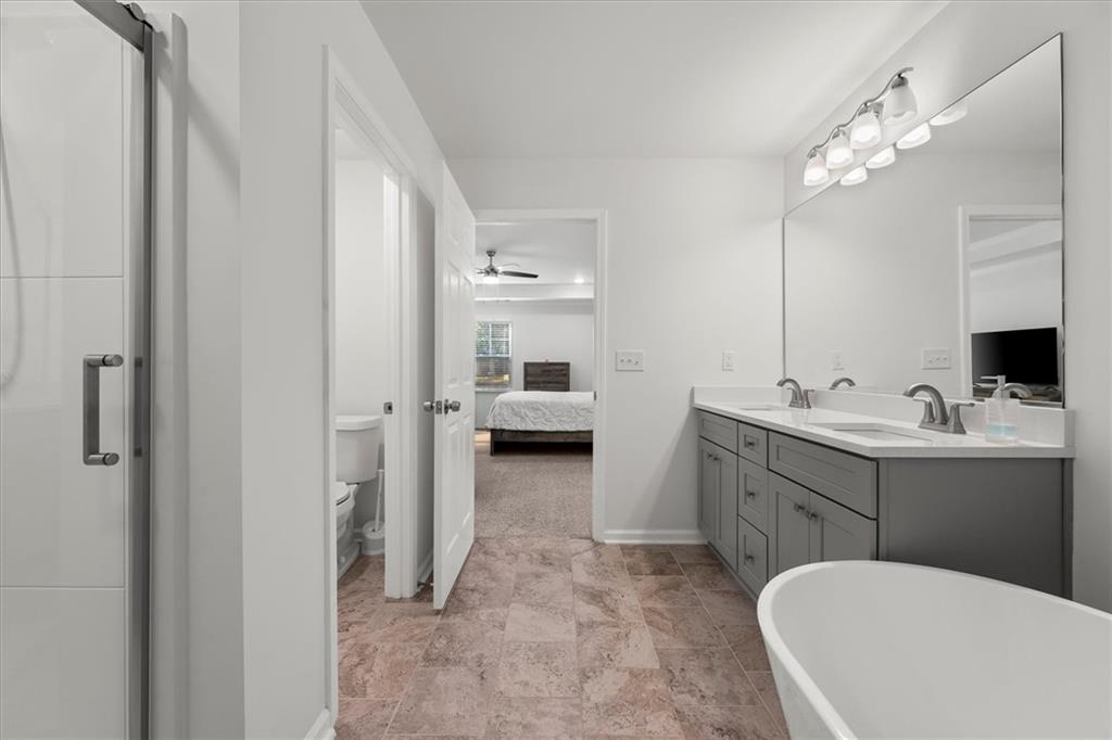 - FeaturesHigh Ceilings 9 ft Upper, Disappearing Attic Stairs, High Ceilings 9 ft Main, Double Vanity, Tray Ceiling(s), Walk-In Closet(s)
