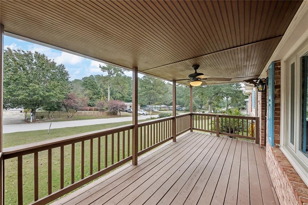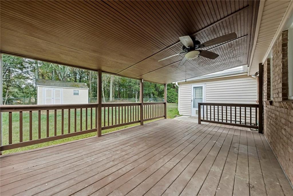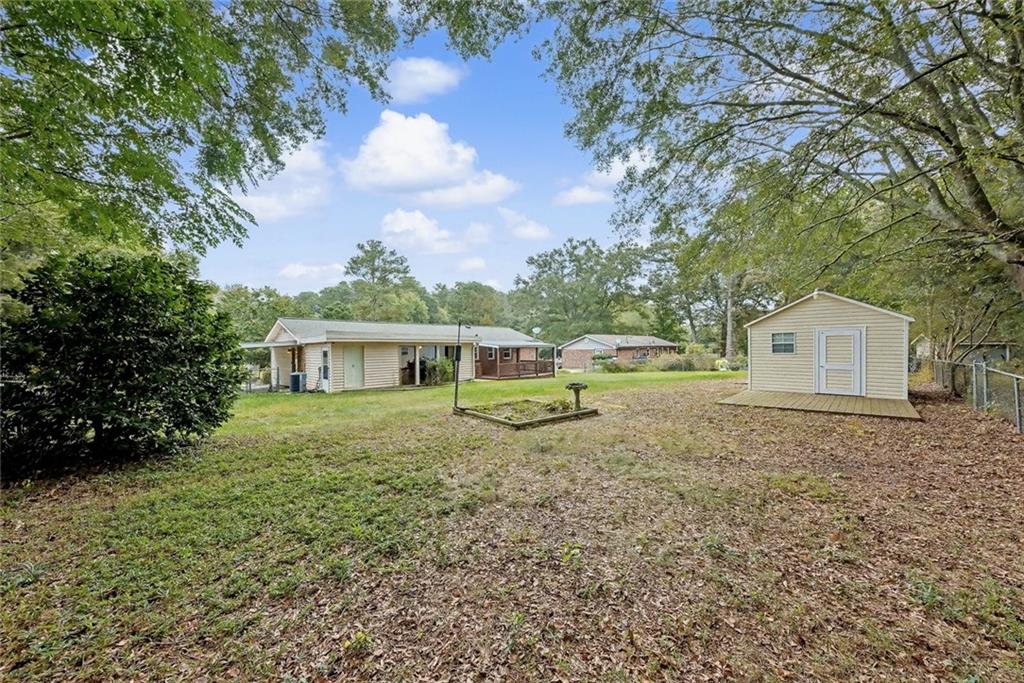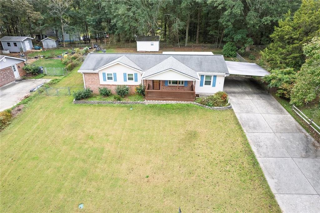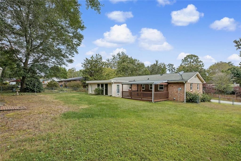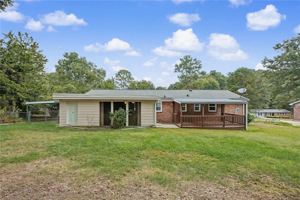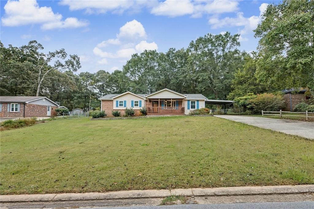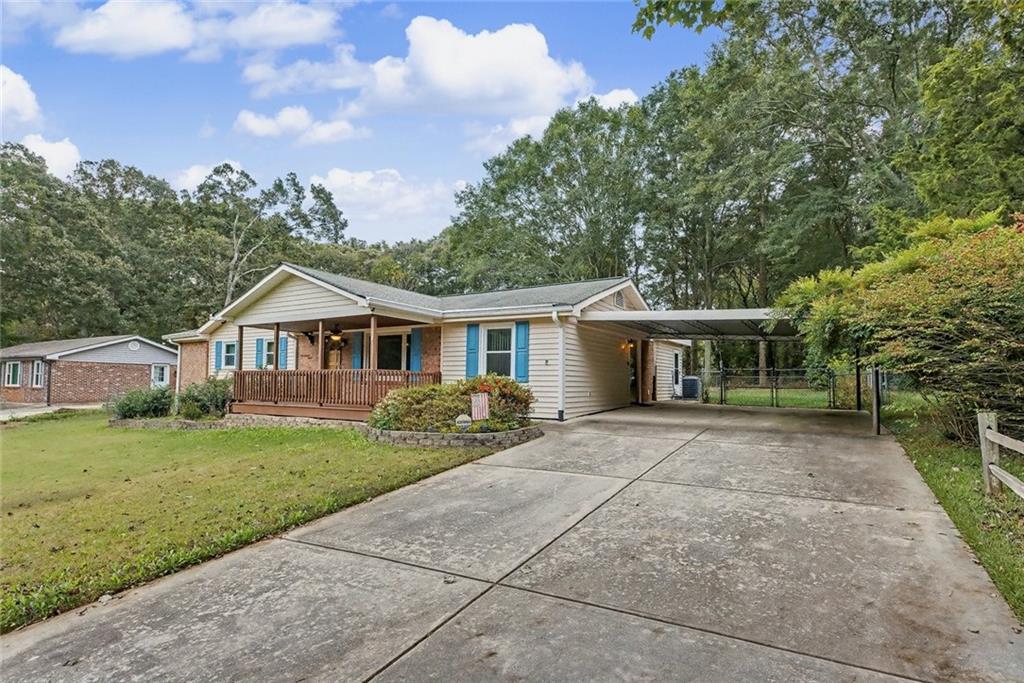 Move-in ready ranch home in Powder Springs! This well-maintained property features low-maintenance vinyl siding with brick accents and wonderful curb appeal. Enjoy morning coffee on the spacious front porch overlooking the large, level front yard. Inside, the open-concept living area includes a comfortable family room, dining area, and an updated kitchen with newer cabinets and appliances. A bonus room offers the perfect spot for watching a movie or the big game, complete with a storage room featuring shelving and exterior access. Step outside to a large covered deck—ideal for grilling or relaxing—overlooking the expansive backyard with plenty of space for play, gardening, or entertaining. An oversized storage shed provides room for yard equipment and more. The home offers a primary bedroom with a convenient half bath, plus three additional bedrooms that share a full hall bath. There’s also an interior laundry closet for added convenience. Additional features include newer windows, blown insulation, front and rear sprinkler systems, and a 2-car carport with easy owner-side entry into the home. This charming home is move-in ready and waiting for new owners to make wonderful memories here! Estate-owned property being Sold AS-IS.