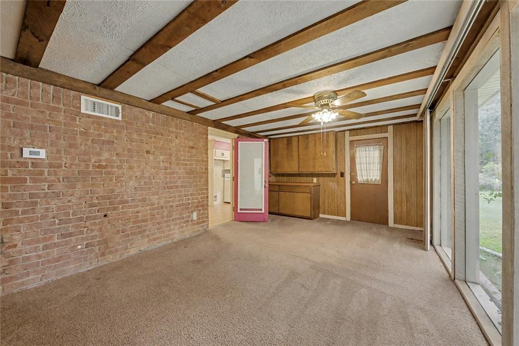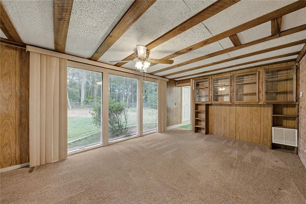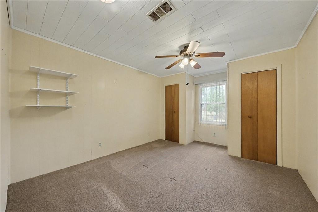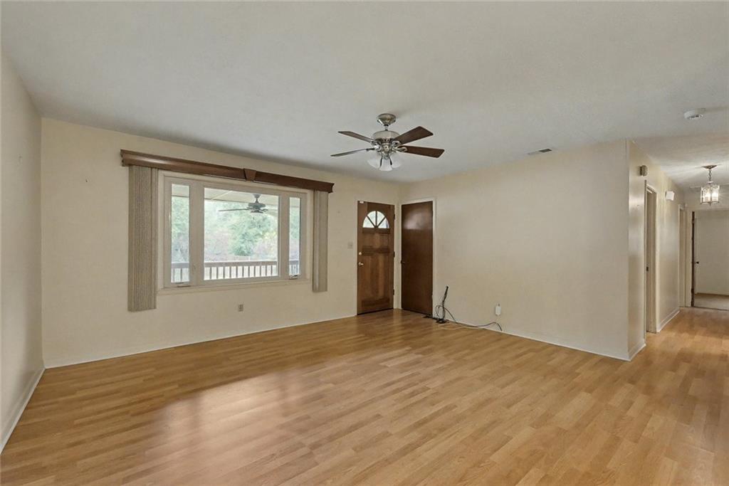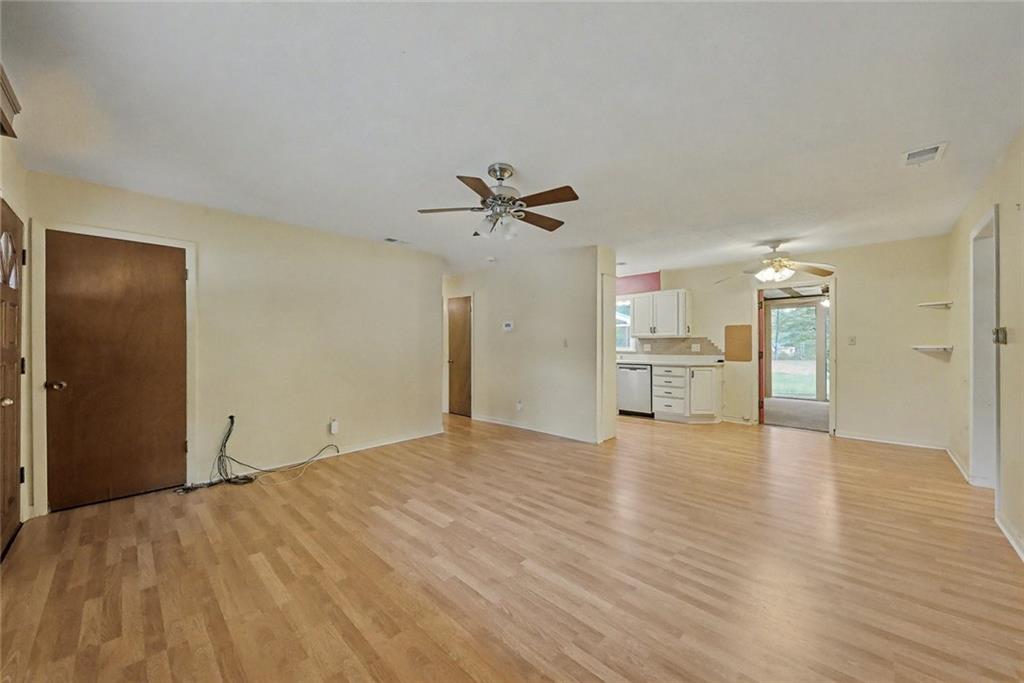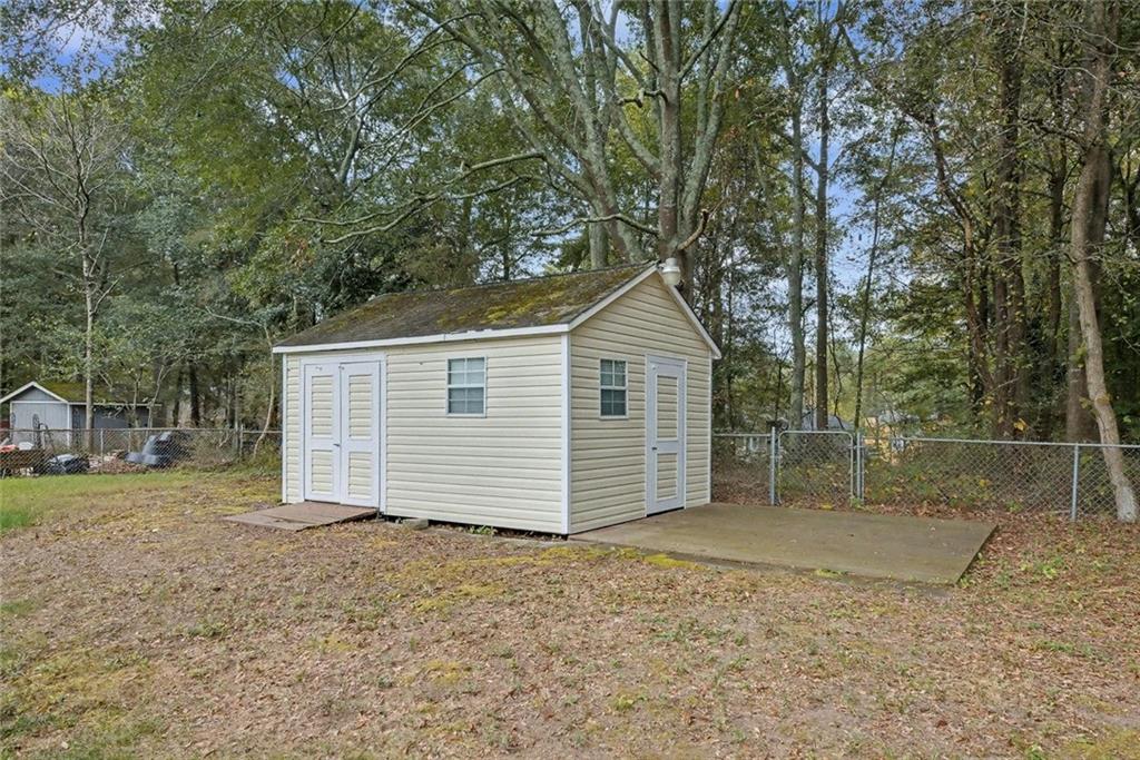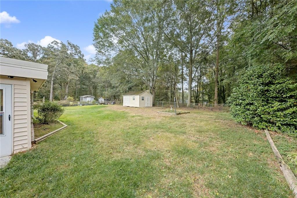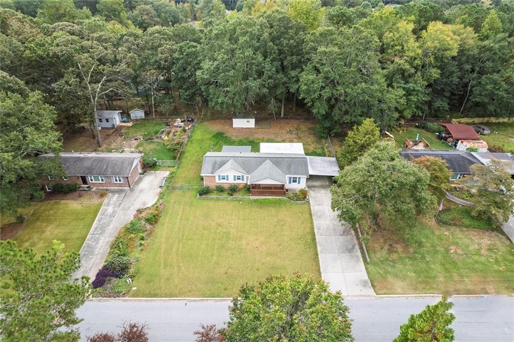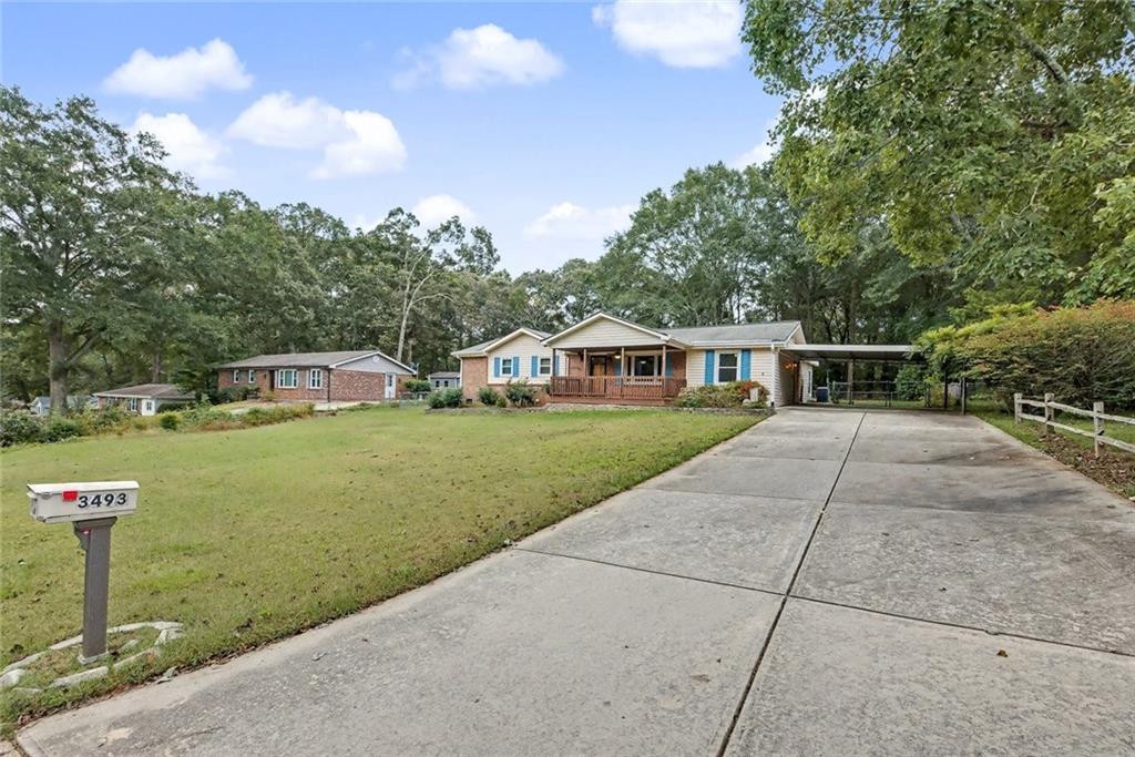 Move-in ready ranch home in Powder Springs! This well-maintained property features low-maintenance vinyl siding with brick accents and wonderful curb appeal. Enjoy morning coffee on the spacious front porch overlooking the large, level front yard. Inside, the open-concept living area includes a comfortable family room, dining area, and an updated kitchen with newer cabinets and appliances. A bonus room offers the perfect spot for watching a movie or the big game, complete with a storage room featuring shelving and exterior access. Step outside to a large covered deck—ideal for grilling or relaxing—overlooking the expansive backyard with plenty of space for play, gardening, or entertaining. An oversized storage shed provides room for yard equipment and more. The home offers a primary bedroom with a convenient half bath, plus three additional bedrooms that share a full hall bath. There’s also an interior laundry closet for added convenience. Additional features include newer windows, blown insulation, front and rear sprinkler systems, and a 2-car carport with easy owner-side entry into the home. This charming home is move-in ready and waiting for new owners to make wonderful memories here! Estate-owned property being Sold AS-IS.