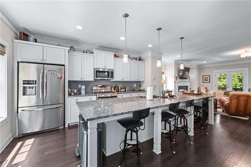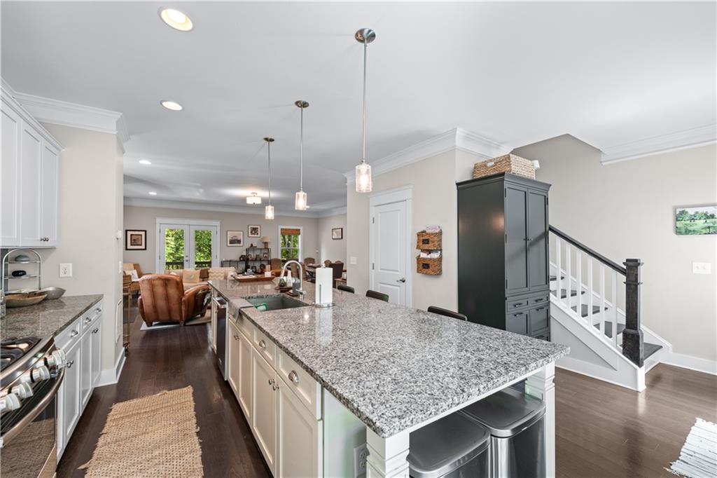 - KitchenBreakfast Bar, Cabinets Other, Kitchen Island, Stone Counters, View to Family Room