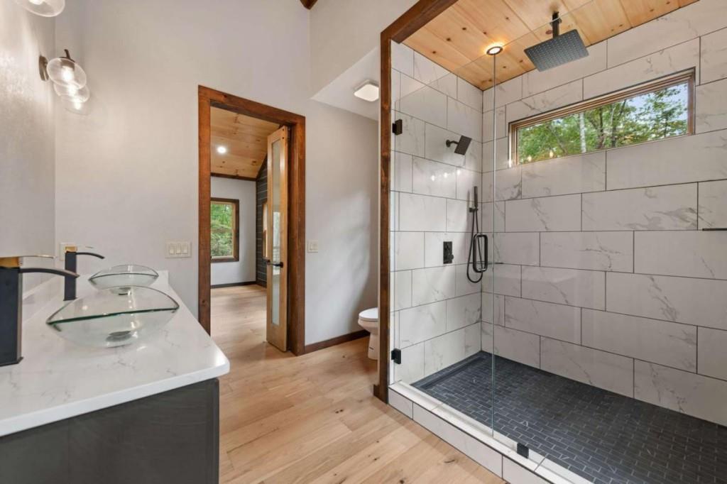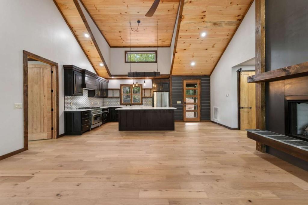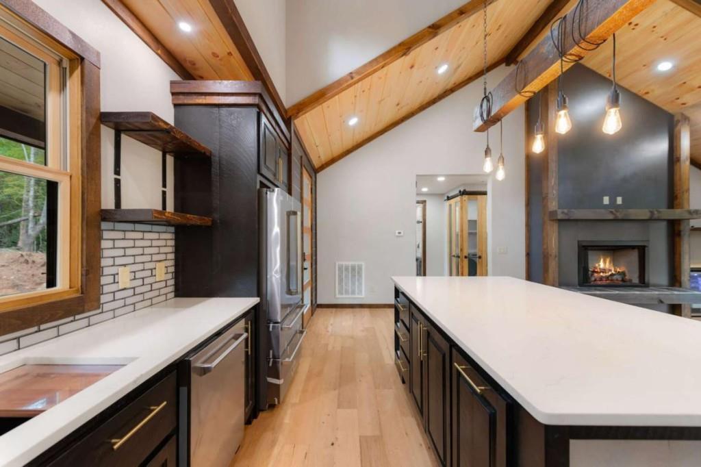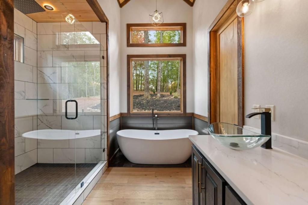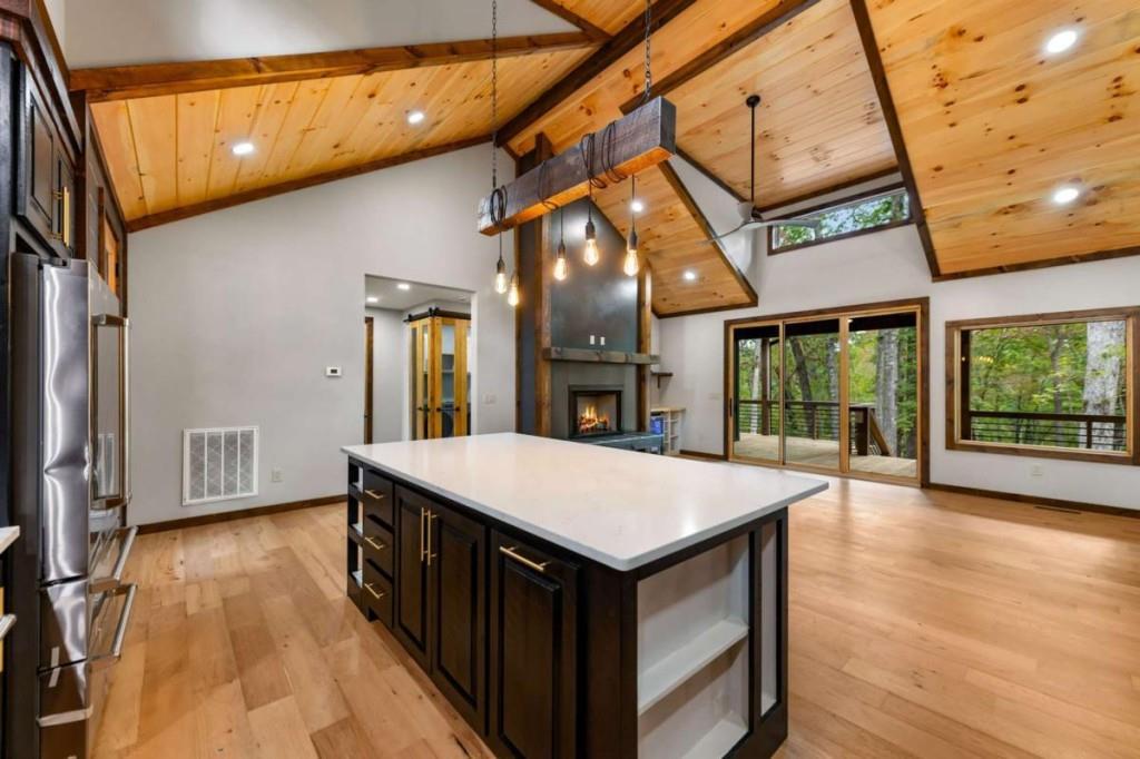 Your Ultimate Mountain Craftsman Haven! Tucked away on 1.87 acres of pristine mountain land, this brand-new, custom-built 3-bedroom, 3-bathroom Mountain Craftsman is your ticket to effortless one-level living with style and comfort. Step into the spacious great room, where a gas log fireplace crackles with warmth, flanked by built-in shelves perfect for your favorite novels or keepsakes, and a wine cooler ready for impromptu gatherings. Gleaming hardwood floors, soaring vaulted ceilings, and a stunning wall of windows frame panoramic mountain views, letting nature steal the show. The gourmet kitchen is a chef's dream, boasting quartz countertops, top-of-the-line Z-Line stainless steel appliances, and custom cabinetry that blends form and function. A center island invites casual meals or lively conversations, while a walk-in pantry keeps everything organized. Retreat to the expansive primary suite, your personal sanctuary with a spacious walk-in closet, a private porch for sipping coffee as the sun rises, and a spa-like bathroom featuring a tile shower, luxurious soaking tub, and double vanity. The secondary en-suite bedroom offers porch access, a tile shower, and a double vanity, making guests feel pampered. A third guest bedroom and a beautifully appointed guest bathroom ensure space for everyone. The full laundry room, complete with a sink and stainless steel washer/dryer, makes chores a breeze. With easy access and a flat lot, outdoor fun is effortless. Just 5 miles from McCaysville/Copperhill, you'll find charming boutiques, delightful dining, and endless activities, while Downtown Blue Ridge, a short drive away, offers even more adventure. This isn't just a home-it's a lifestyle, blending serene mountain living with modern luxury. Ready to make this masterpiece yours?