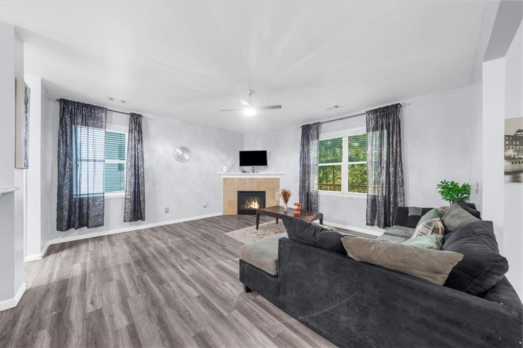 Welcome to 7350 Gossamer St, a beautifully maintained 3-bedroom, 2.5-bath home in the heart of Union City that perfectly blends comfort and modern style. Featuring luxury vinyl flooring throughout the main living areas, this inviting home offers a spacious open layout with a bright dining room, cozy family room with fireplace, and a stylish kitchen boasting granite countertops and stainless-steel appliances. Upstairs, a versatile sitting area provides the ideal spot for an office, reading nook, or play space. Step outside to enjoy a private, fenced backyard complete with a stunning new double deck—perfect for entertaining or relaxing outdoors. The home also includes an unfinished partial basement for additional storage and a two-car garage for convenience. With a roof replaced in 2021, this move-in-ready gem combines modern updates, thoughtful design, and a serene setting ideal for today’s lifestyle.