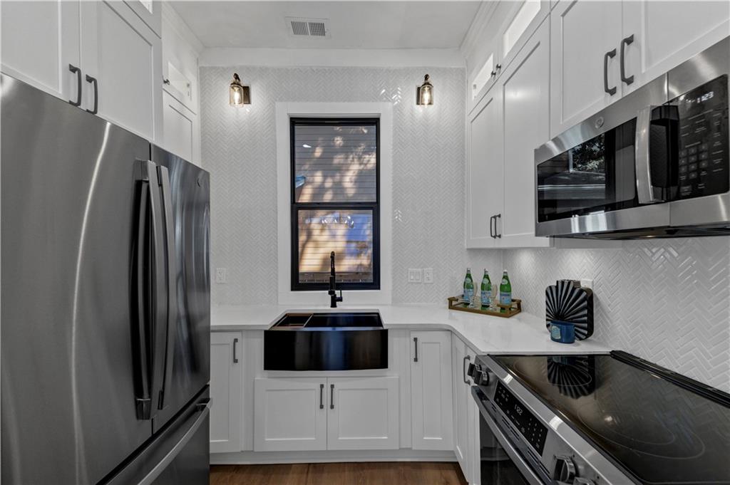 - KitchenCabinets White, Eat-in Kitchen, Kitchen Island, Pantry