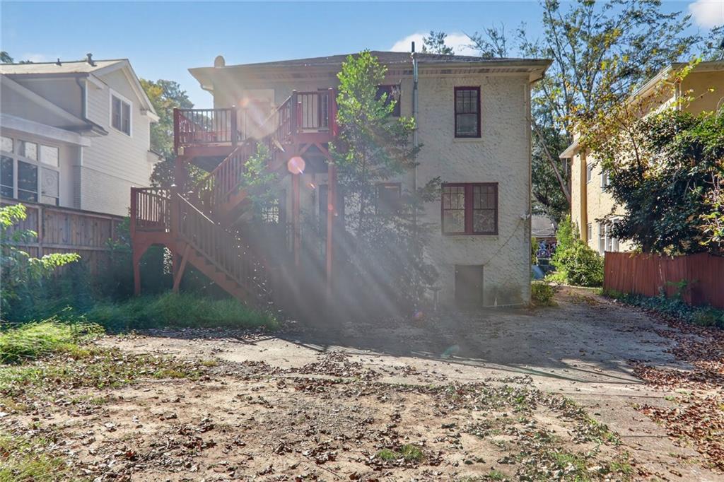 Classic Charm Meets Prime Intown Living – Two-Story Morningside Duplex perfect for conversion to single family home. Set on a level, grassy lot in the heart of Morningside, this classic two-story stucco duplex catches the eye with bold red trim, double front porches, and undeniable curb appeal. The full-width porch on the main level and private balcony upstairs are perfect spots to sip coffee, unwind, or wave to neighbors passing by. The home’s original architectural details, mature landscaping, and wide front lawn give it a timeless presence. Tucked back from the street with a long driveway and off-street parking in the rear, it offers the kind of privacy and convenience that’s hard to find this close to everything. Located between Virginia Highland and Piedmont Park, you’re just a short stroll from the Morningside Village dining scene, including local favorites like Alon’s Bakery, Whiskey Bird, Orme Park, and the BeltLine. Each unit includes two bedrooms, plus a flexible third room ideal for a home office. The kitchens have been tastefully updated with islands and stainless steel appliances, while the separate dining rooms and living spaces—with original fireplaces—add to the home’s charm. You’ll find beautiful parquet and hardwood floors throughout, in-unit laundry, and both front and back decks for added outdoor living. Whether you’re looking to house-hack, invest, or live with extended family, this duplex is a rare opportunity in one of Atlanta’s most beloved, walkable neighborhoods.