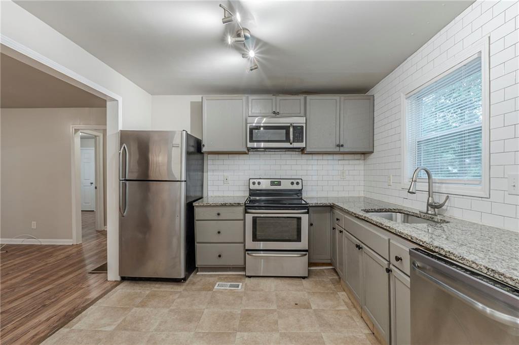 This beautifully updated 3-bedroom, 2-bath ranch home in East Point offers stylish finishes and an open floor plan perfect for modern living. The kitchen features granite countertops, stainless steel appliances, and a counter-to-ceiling subway tile backsplash. A private ensuite in the primary bedroom includes a floor-to-ceiling tiled shower and a sliding barn door for added charm. Enjoy outdoor entertaining on the back deck overlooking a level, fenced backyard. Located less than five minutes from downtown East Point, this home combines character, location, and convenience—ideal for first-time buyers or investors looking for a turnkey opportunity in Fulton County.