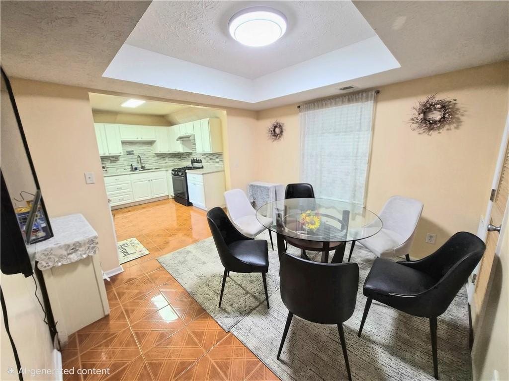 Welcome home to this charming and well-kept property featuring a bright kitchen with white cabinetry, granite-look countertops, and a modern mosaic backsplash. The semi-open dining area creates a seamless flow for everyday living, complemented by durable tile flooring and an abundance of natural light throughout the main level. The layout feels open yet cozy, offering a comfortable space to cook, gather, and relax. Outside, the home offers great curb appeal with a covered front porch, vinyl siding, and an architectural shingle roof for added durability. The level lot and attached two-car garage provide convenience and functionality, making day-to-day living effortless. Located close to shopping, schools, and major highways, this move-in-ready home combines comfort, low-maintenance living, and a welcoming atmosphere—perfect for its next owner.