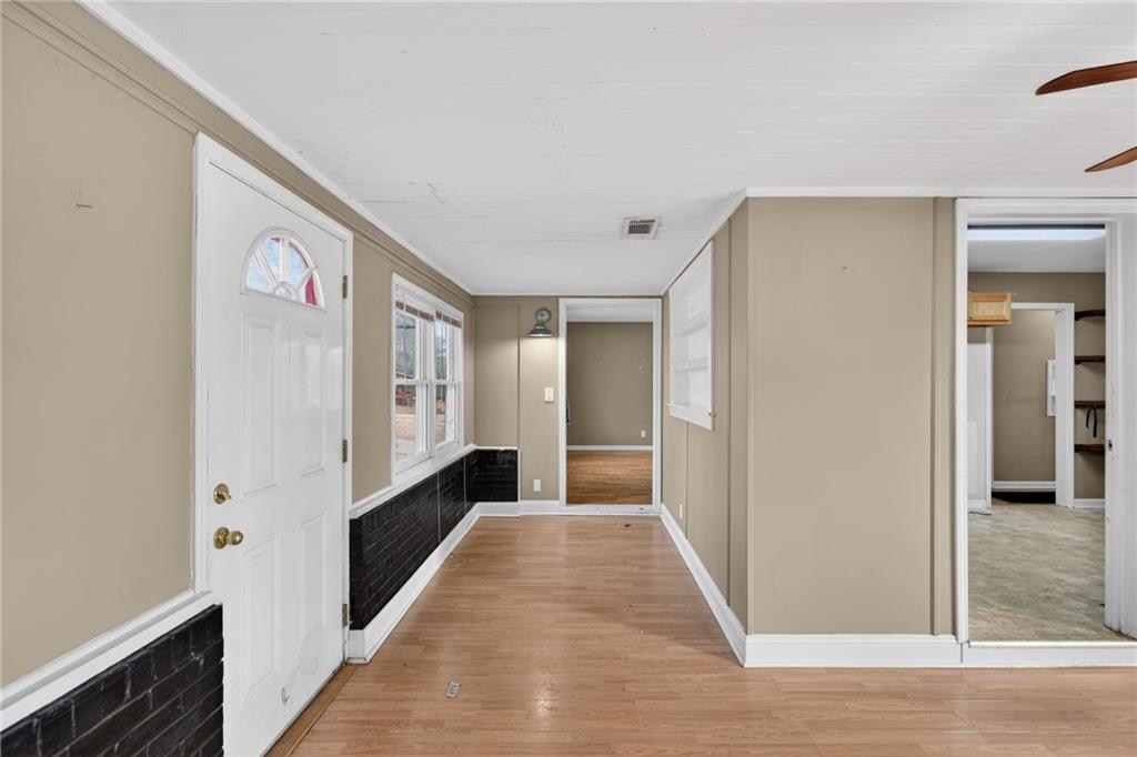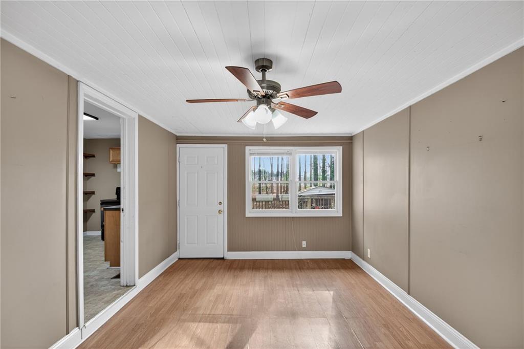 Charming cottage in the heart of Bremen! This spacious 2-bedroom, 1-bath home greets you with gleaming hardwoods, a bright, welcoming interior and an ample living room that flows easily into the separate dining room — a rare find in this price point. Finished room off the kitchen could easily become a 3rd bedroom! Enjoy the flexibility of the bonus room, ideal for a home office, playroom, or cozy den. The kitchen offers plenty of cabinet space and opens to the peace of the large backyard. This move-in ready home showcases tons of updates, including a new metal roof and gutters (2022), newer lighting, and new windows in the bedrooms, living room, and kitchen. The foyer features original brick accents, and the custom split-log wall adds a warm cabin vibe to the living room. You’ll also find historic hardwood floors, a refreshed bathroom with new vanity and mirror, and surprisingly large closets in both bedrooms. Nest thermostat stays. Step outside to an oversized deck overlooking a large, fenced backyard, perfect for pets, play, or entertaining. The walk-in crawl space offers valuable storage options, and the carport provides convenient covered parking. Located inside the city limits and close to shopping, dining, and I-20, this home gives you access to the award-winning Bremen City Schools in a quiet, established neighborhood. Don't miss this adorable, well-updated home offering convenience, flexibility, character, and room to grow! USDA Eligible!