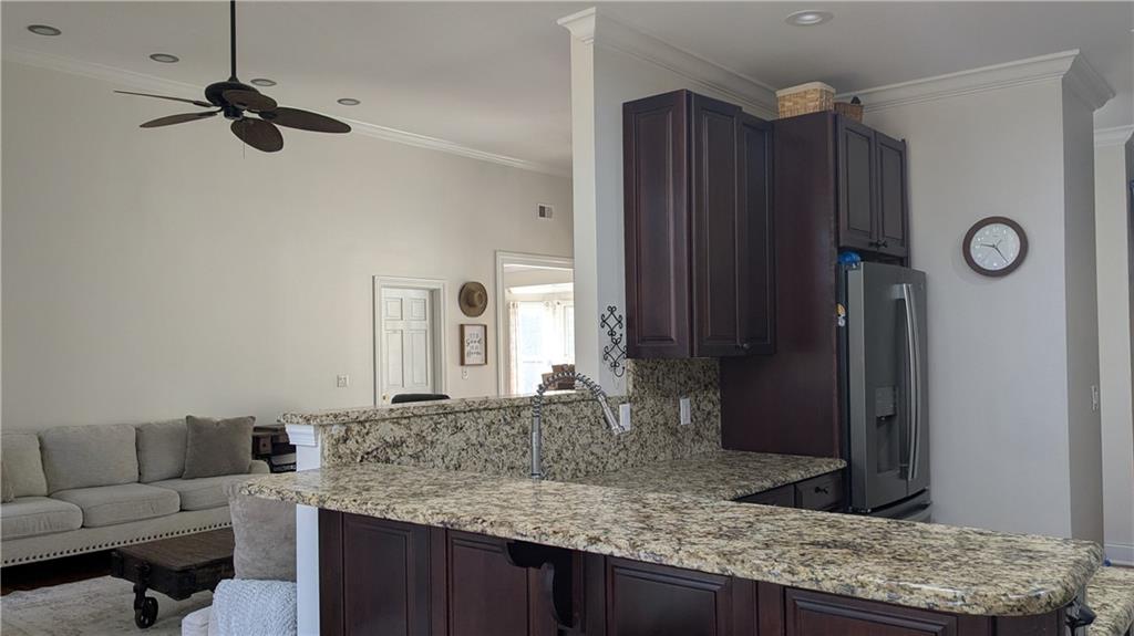 - KitchenBreakfast Bar, Breakfast Room, Cabinets Stain, Other Surface Counters, Pantry Walk-In, Second Kitchen, Stone Counters, View to Family Room