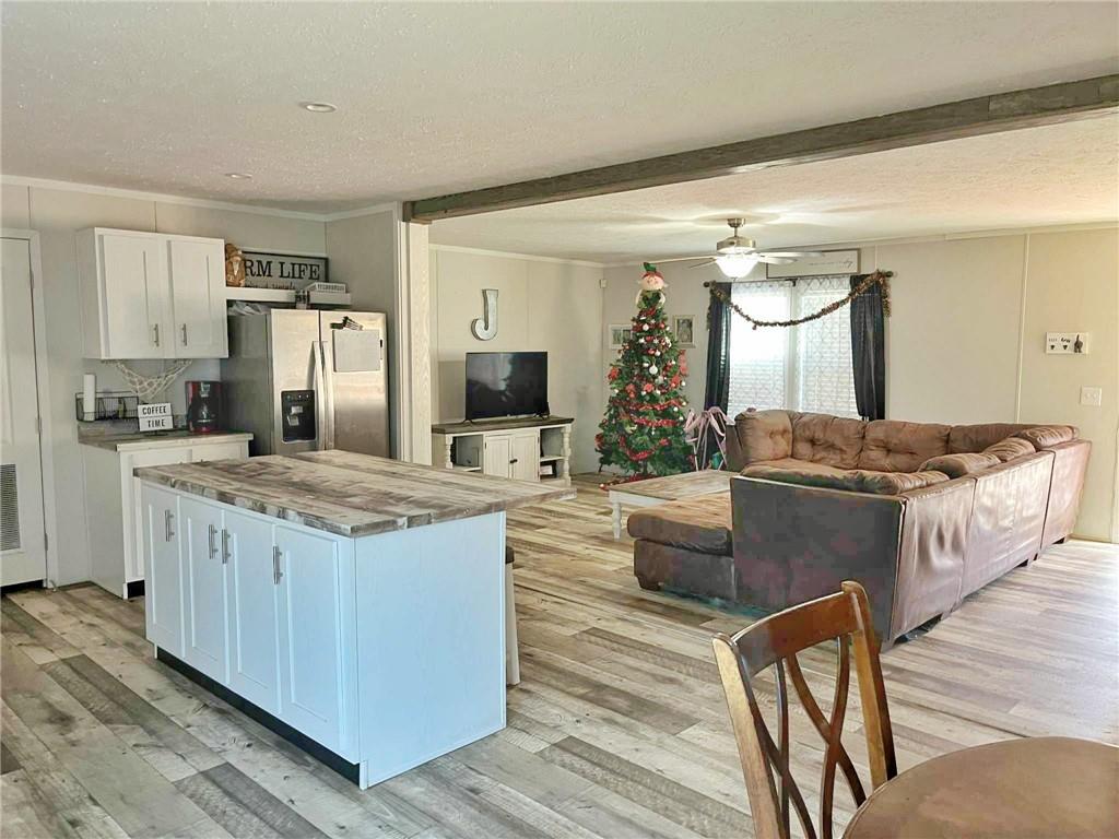 - KitchenCabinets White, Eat-in Kitchen, Kitchen Island, Pantry, View to Family Room