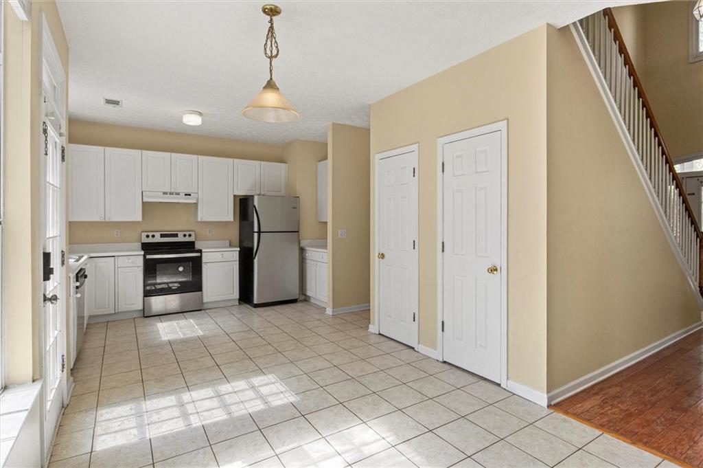 - KitchenCabinets White, Eat-in Kitchen, Pantry, View to Family Room