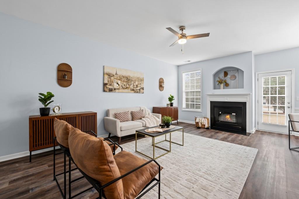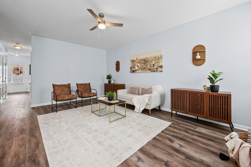 Beautiful move-in ready three bedroom two and a half bathroom townhouse in Brookhollow Village! This home features tall ceilings, great natural light and open kitchen living room dining room area, a half bathroom and one car garage on the main floor. Sliding glass door steps out to your patio with room for a grill or furniture to entertain. Upstairs you'll find a great sized primary bedroom with walk-in closet and a primary bathroom with tub and separate shower. Down the hallway you'll pass closet storage and very convenient upstairs laundry before you find two guest bedrooms with a hallway entry bathroom. This property is extremely convenient to several exits on 85, minutes from Indian Trail or Jimmy Carter Blvd, tucked nicely away from the interstate. Home has been immaculately maintained, freshly painted with new LVP on the main living area, carpets were just cleaned and in great condition upstairs. Home just needs a new owner! **Seller is offering $5,000 toward buyer’s closing costs. An additional $3,000 in closing cost assistance is available when using Align Financial, the preferred lender**