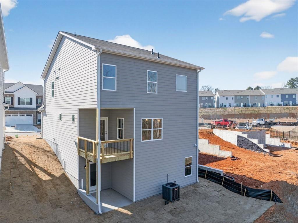 Move-In Ready! The Buford II plan by Smith Douglas Homes in the highly anticipated Sanders Park community in Austell, GA—where comfort, style, and convenience meet. Sanders Park is a swim community! This stunning home sits on an unfinished basement, offering endless possibilities for future expansion or storage. Enjoy 9-ft ceilings on both floors that enhance the spacious feel throughout. The central family room features a linear fireplace for cozy gatherings and opens seamlessly to the covered back patio and deck, perfect for relaxing outdoors. The chef-inspired kitchen includes quartz countertops, a large peninsula, and a bright breakfast nook, ideal for everyday meals or entertaining. The main level showcases luxury vinyl plank flooring, black accent finishes, and elegant iron railings for a modern touch. Upstairs, a versatile loft offers flexible space for a home office, playroom, or fitness area. The private primary suite impresses with a tray ceiling, spa-style bath featuring a tiled shower and garden tub, and a large walk-in closet. Two additional bedrooms, a full bath, and a convenient upstairs laundry room complete the second floor. Enjoy community living with a planned neighborhood pool, ideal for summer fun and relaxation. Located just minutes from downtown Austell, I-20, and shopping, dining, and recreation, Sanders Park offers the perfect blend of comfort and convenience. Upgrades include: ¾ glass front door, black hardware finishes, iron railings upstairs and down, upgraded tile in baths and laundry, and thoughtfully placed windows that fill the home with natural light even in the unfinished basement! Experience the lifestyle you’ve been dreaming of at Sanders Park by Smith Douglas Homes. Special incentives with use of prefered lender. Photos of home.