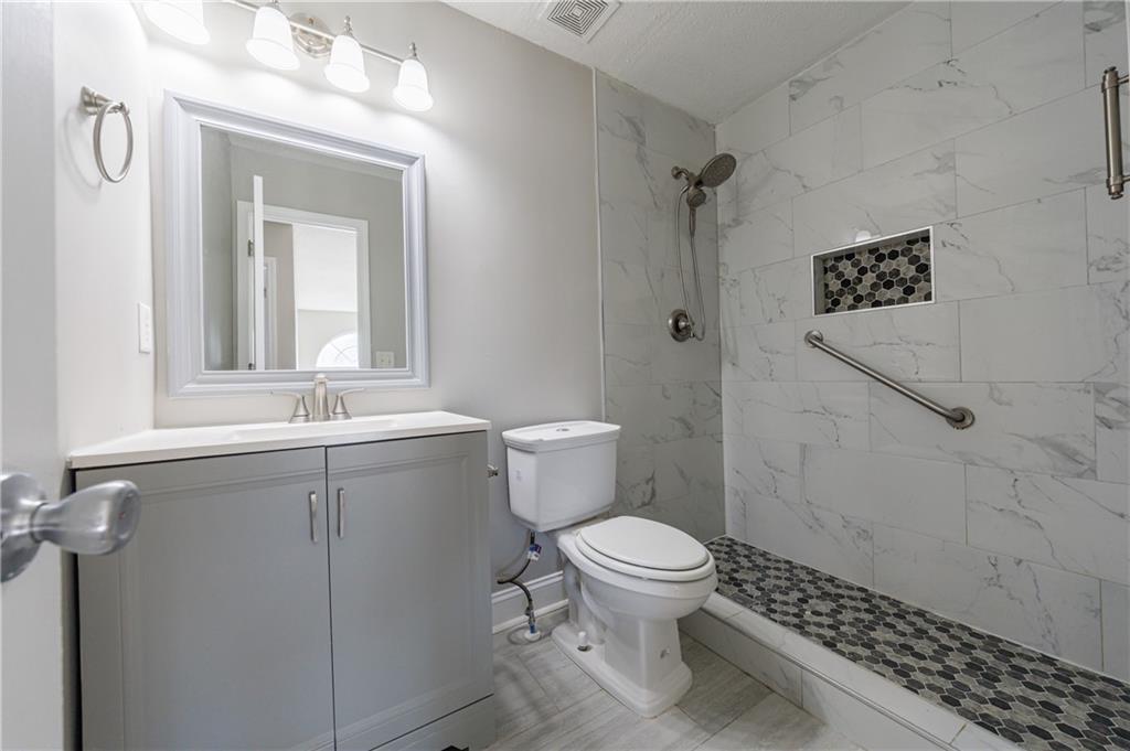 Welcome to oversized living at an approachable price point! A newer roof and newer HVAC's provide years of easy living and convenience. Numerous windows make the main level feel even more spacious than it is, with the fireplace being the focal point of your California style gathering spot. An open concept kitchen provides easy access to the living room and formal dining room, with al fresco dining at your fingertips....making entertaining a breeze. The copious amount of natural light brings the outside in. 1 bedroom and a full bathroom on the main level are perfect for the in-laws! 4 graciously appointed bedrooms and 2 full bathrooms round out the upper level, all with vaulted/tray ceilings which give the feeling of grandeur. This established neighborhood is just minutes away from it all, a mere 20 min drive to Hartsfield Jackson and a plane ride away from all your favorite Caribbean beaches! The private backyard can easily entertain the furry ones. Plenty of parking with the enclosed 2-car garage and spacious driveway. Oversized windows pour in natural light. The dual vanity and walk-in closet in the primary bathroom give plenty of room for getting ready in the mornings. This home is ready for its next chapter, come see what you've been missing!