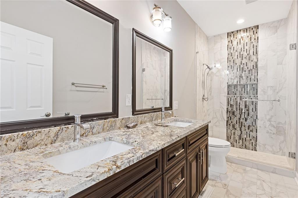 LOCATION! LOCATION! LOCATION! THIS BEAUTIFULLY UPDATED 4-SIDES BRICK TRADITIONAL 4 BED |3 BATH GEM IS NESTLED IN THE HEART OF NORCROSS ON .67-ACRE LOT, OFFERING THE PERFECT BLEND OF PRIVACY AND CONVENIENCE NEAR WILLIAMS RD AND I-85. STEP INSIDE TO A DRAMATIC TWO-STORY FOYER WITH HIGH CEILINGS, OPEN-CONCEPT LIVING AND DINING AREAS, A FLEXIBLE OFFICE/BONUS ROOM, AND A FULL BATH ON THE MAIN LEVEL. THE RENOVATED KITCHEN FEATURES QUARTZ COUNTERTOPS, DESIGNER BACKSPLASH, LARGE ISLAND, AND MODERN LED LIGHTING OVERLOOKING THE FAMILY ROOM. ENJOY EASY ACCESS TO THE BACK DECK—PERFECT FOR RELAXING OR ENTERTAINING. UPGRADED BATHROOMS INCLUDE QUARTZ COUNTERTOPS, DESIGNER SHOWERS, CUSTOM VANITIES, AND UPDATED TILE. THE OVERSIZED PRIMARY SUITE UPSTAIRS OFFERS A PRIVATE BATH AND AMPLE SPACE, PLUS GENEROUS SECONDARY BEDROOMS. HARDWOOD FLOORING, FRESH INTERIOR PAINT, ROOF REPLACED IN 2022, HVAC REPLACED IN 2021. NO HOA AND NO RENTAL RESTRICTIONS. MOVE-IN READY AND A MUST-SEE!