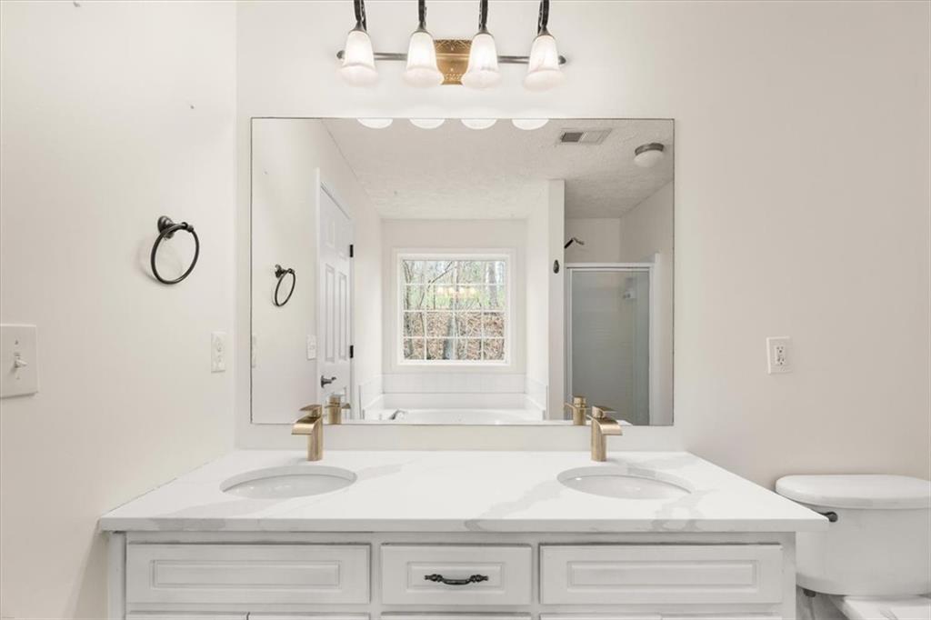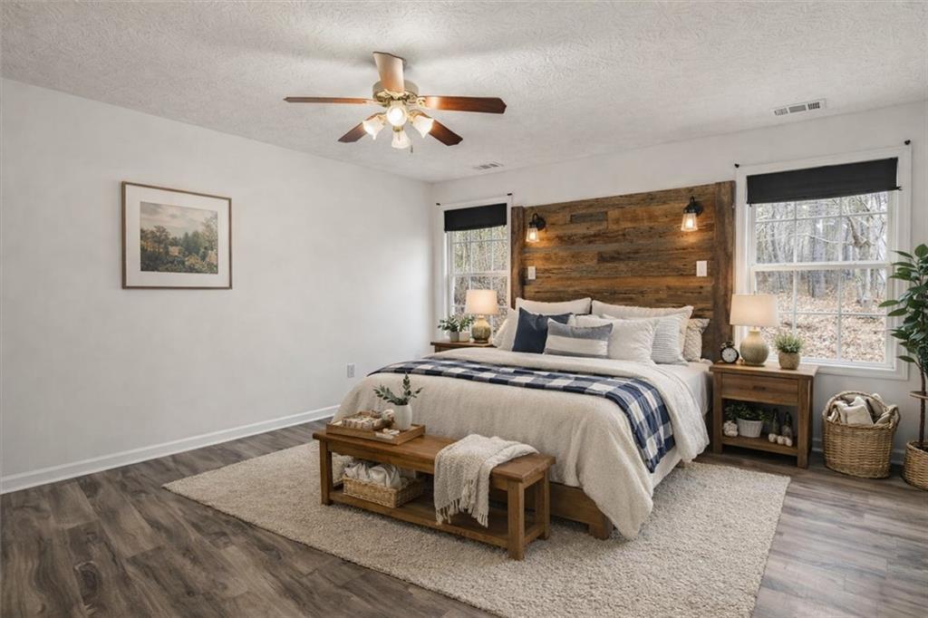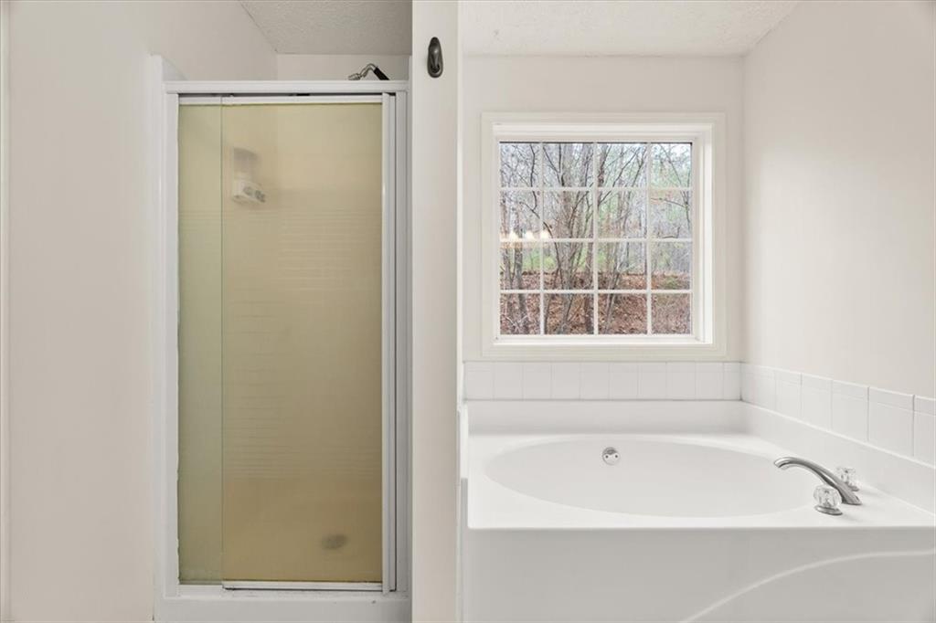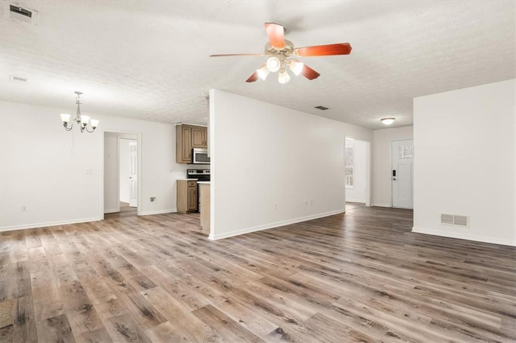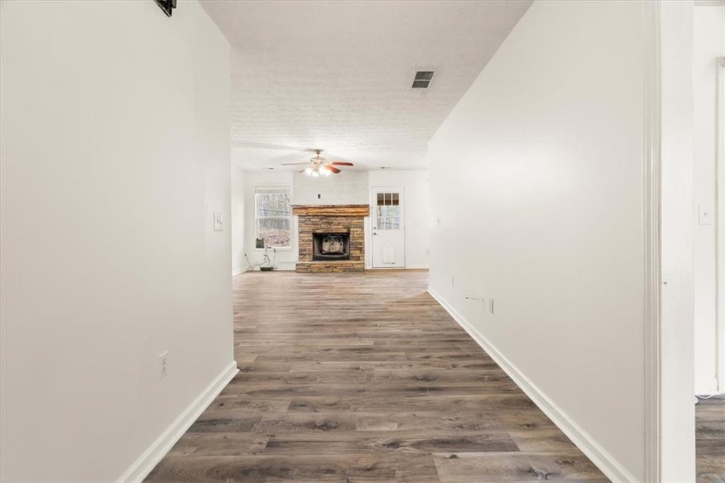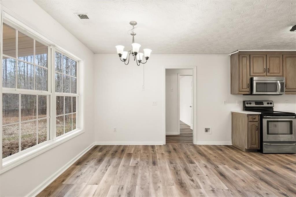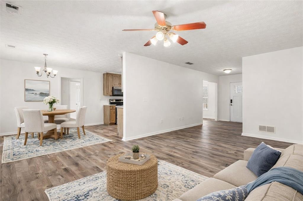 Welcome to peaceful country living in Oxford GA, nestled on a private wooded lot of nearly 3 acres and no HOA! This beautifully updated ranch features luxury vinyl plank flooring throughout, fresh neutral paint, and an open concept layout. The kitchen and bathrooms have been updated with new quartz countertops. The seamless flow between the kitchen, breakfast area, and living room makes the home ideal for both everyday living and entertaining. The primary suite has generous space for furnishings, and an en suite bath with a separate soaking tub and shower. A spacious walk-in closet with a custom shelving system adds both function and style. Secondary bedrooms offer great natural light and flexibility for guests, a home office, or additional living space. Enjoy privacy in the wooded backyard from the covered patio. An additional outbuilding provides extra storage or workshop potential. Conveniently located with easy access to Covington, Conyers, and I-20, this home offers quiet country living with shopping and dining a short drive away.